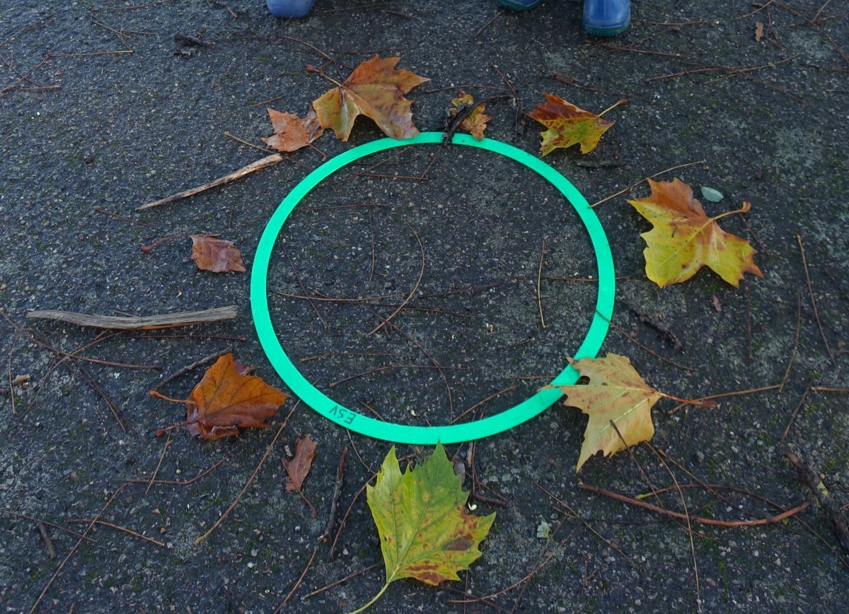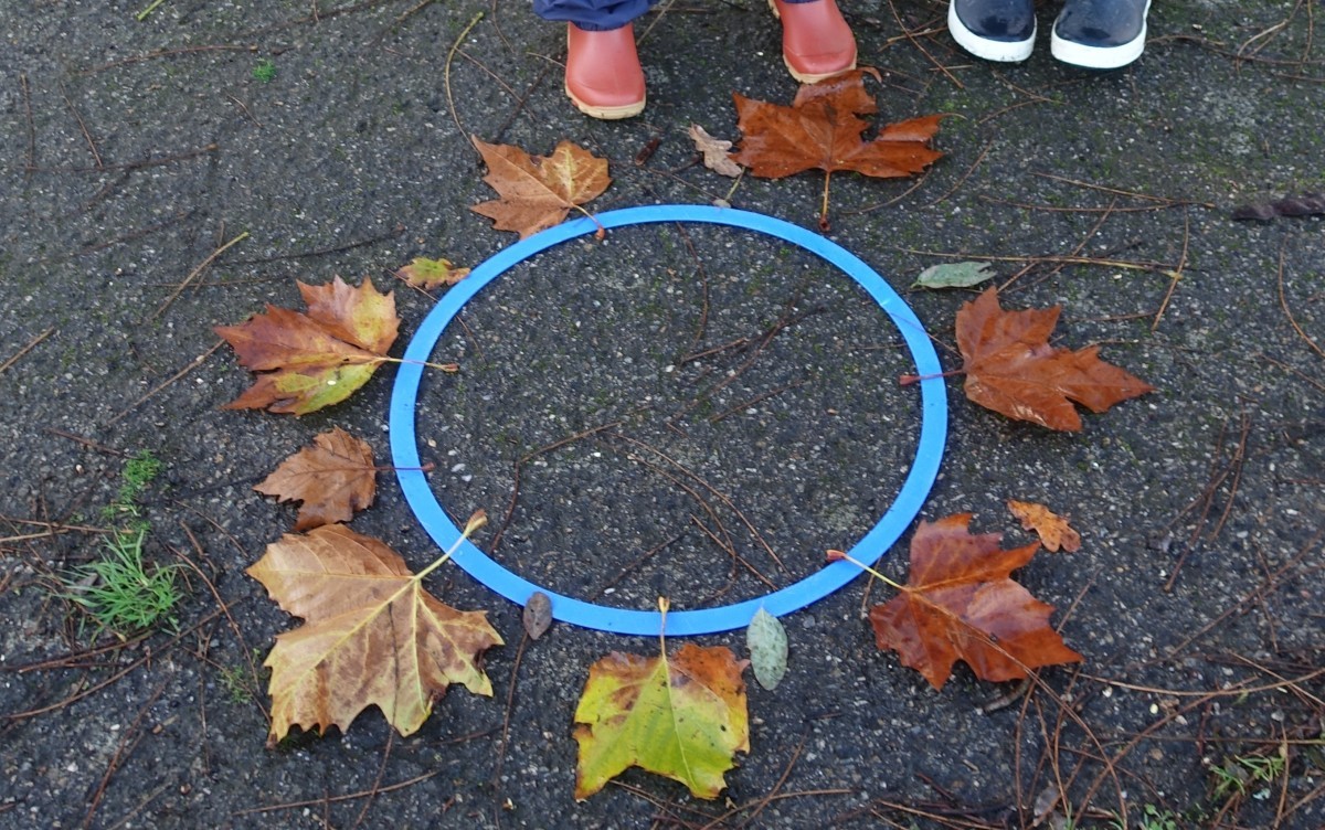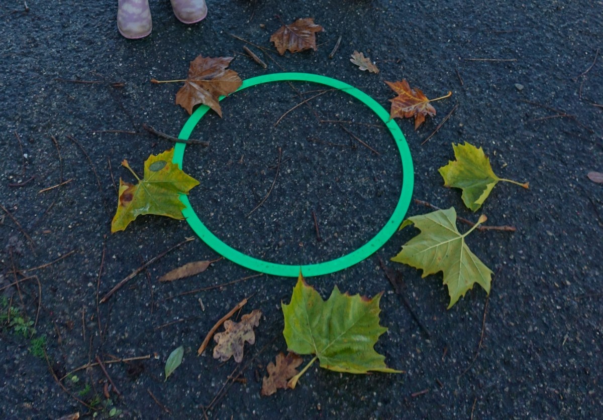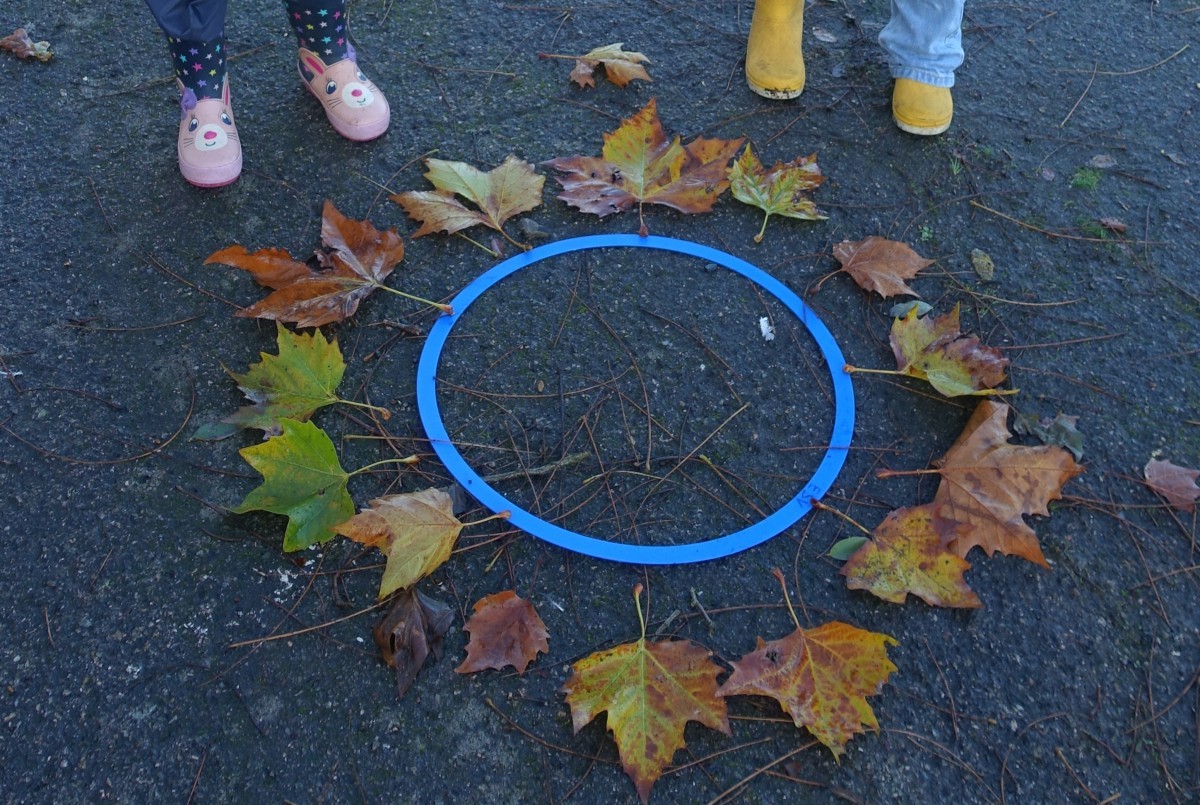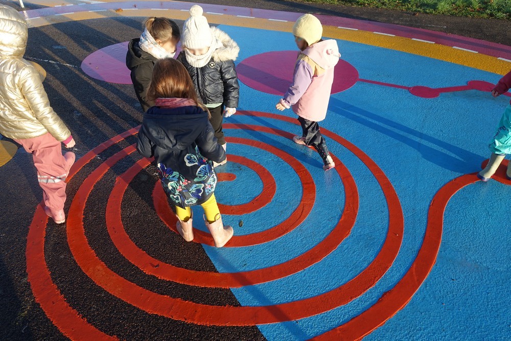 Lundi 24 novembre, nous sommes allés faire classe dehors le matin. Nous avons rejoint le parcours de vélo en silence et à la queue leu leu, nous nous sommes regroupés autour d’un rond-point pour dire notre petite comptine (la chanson hibou-coucou), puis nous avons exploré librement tout le parcours. Il y a beaucoup d’activités : suivre les routes, suivre les boucles, monter sur les demi-globes, enjamber, sauter, courir, jouer au miroir avec les pieds (copiez-moi)… Ensuite, nous avons préparé l’activité suivante en ramassant toutes les feuilles et brindilles tombés sur le parcours. Nous avons pris le temps d’observer un ver de terre qui avançait. Nous sommes allés sur la partie non aménagée (ancien terrain de basket) pour se mettre par deux et faire des motifs répétitifs (algorithmes) avec notre récolte et ce qui se trouvait là. Nous avons pris le temps de faire le tour de tous les motifs avant de faire une récréation. Ceux qui étaient équipés pouvaient s’amuser à sauter dans la petite flaque d’eau (rapidement épuisée) et les autres marchaient simplement dedans avec leurs bottes. Nous avons terminé par un dernier rassemblement autour d’un rond-point, pour rappeler ce que nous avons fait, pris le temps d’écouter autour de nous avant de nous asseoir pour écouter une petite histoire avant de rentrer en classe pour nous changer. Il a fait beau, c’était une belle matinée !