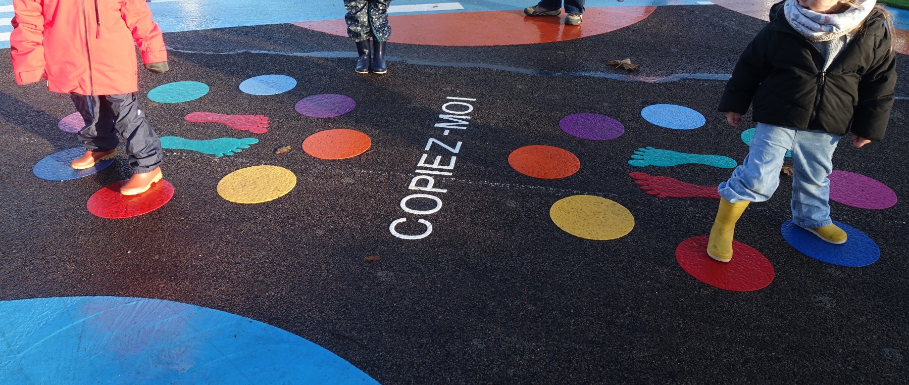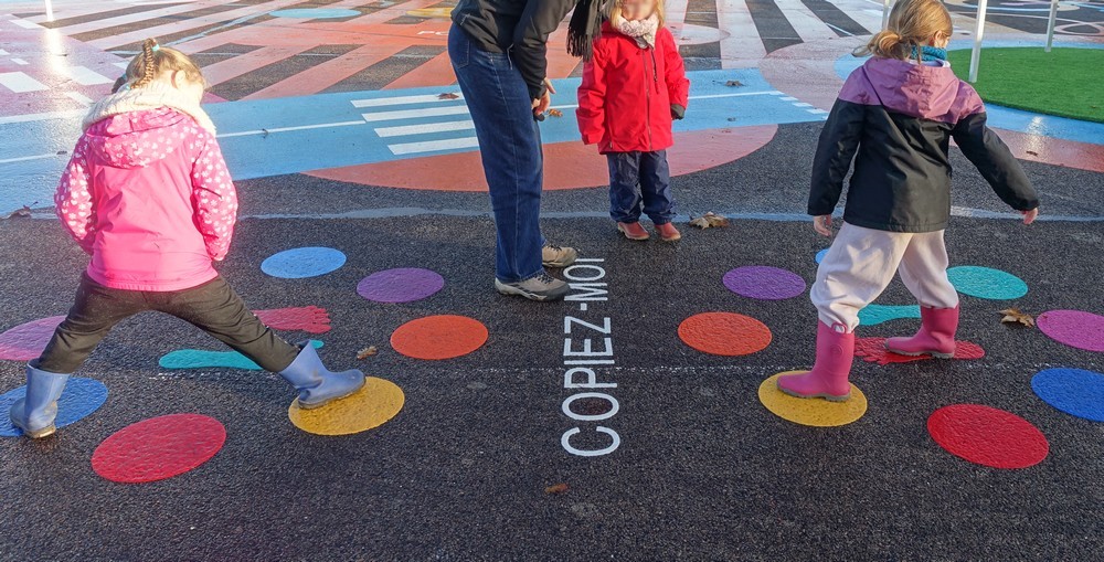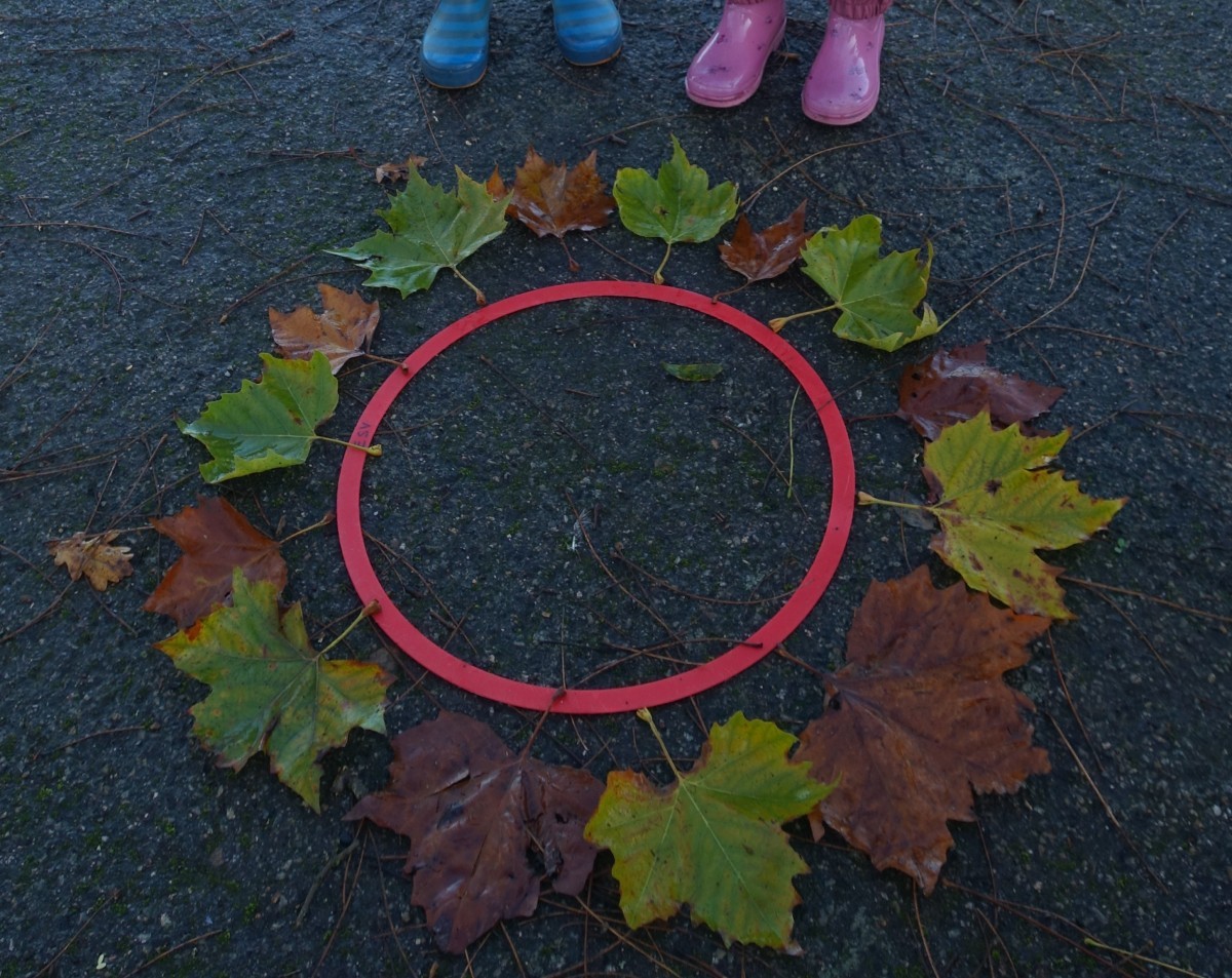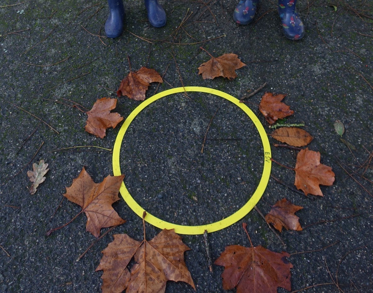 Lundi 24 novembre, nous sommes allés faire classe dehors le matin. Nous avons rejoint le parcours de vélo en silence et à la queue leu leu, nous nous sommes regroupés autour d’un rond-point pour dire notre petite comptine (la chanson hibou-coucou), puis nous avons exploré librement tout le parcours. Il y a beaucoup d’activités : suivre les routes, suivre les boucles, monter sur les demi-globes, enjamber, sauter, courir, jouer au miroir avec les pieds (copiez-moi)… Ensuite, nous avons préparé l’activité suivante en ramassant toutes les feuilles et brindilles tombés sur le parcours. Nous avons pris le temps d’observer un ver de terre qui avançait. Nous sommes allés sur la partie non aménagée (ancien terrain de basket) pour se mettre par deux et faire des motifs répétitifs (algorithmes) avec notre récolte et ce qui se trouvait là. Nous avons pris le temps de faire le tour de tous les motifs avant de faire une récréation. Ceux qui étaient équipés pouvaient s’amuser à sauter dans la petite flaque d’eau (rapidement épuisée) et les autres marchaient simplement dedans avec leurs bottes. Nous avons terminé par un dernier rassemblement autour d’un rond-point, pour rappeler ce que nous avons fait, pris le temps d’écouter autour de nous avant de nous asseoir pour écouter une petite histoire avant de rentrer en classe pour nous changer. Il a fait beau, c’était une belle matinée !