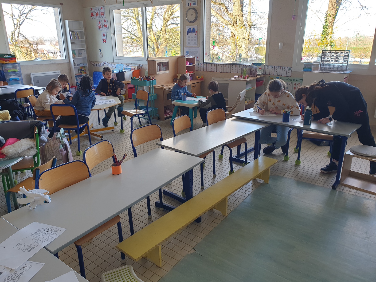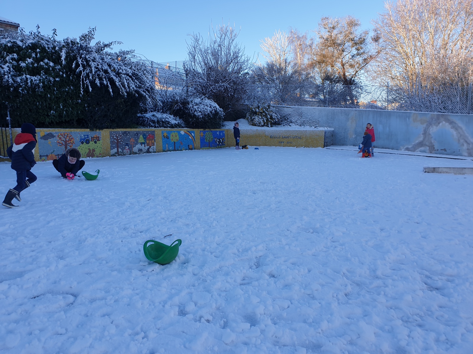 Le mardi 6 janvier, la neige avait recouvert la campagne, mais Sandrine, Martine et Sophie sont venues à l’école à pieds (et en tracteur) pour assurer l’accueil à l’école. Jeanne les a rejointes pour la matinée et 22 enfants ont été accueillis le matin, 17 l’après-midi. La journée s’est déroulée autour de diverses activités : mini crêpes partagées (apportées par un enfant, merci !) après le rituel de la date, puis répartition des enfants dans trois classes selon leur niveau : les PS dans leur classe avec Sandrine, les MS-GS et CP dans la classe de Sophie avec Martine, et les CE1-CE2 et CM2 dans la classe des CP avec Jeanne pour des activités et jeux, écoute musicale, lecture d’albums autour de la galette. Les 3 récréations ont duré 30 mn et les enfants qui n’étaient pas équipés ont pu emprunter des bottes et gants du stock de l’école afin de bien profiter de la neige et rentrer au sec ensuite. Les plus petits ont pu faire leur sieste habituelle, les autres ont commencé l’après-midi par un temps calme avant de se mettre « au travail » avec des fiches de leur choix, puis d’autres jeux, lectures…