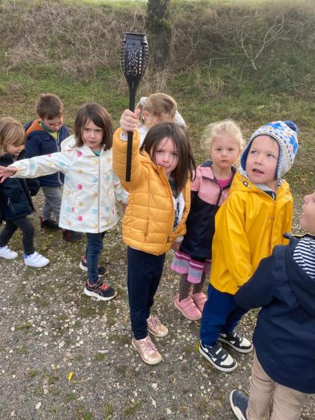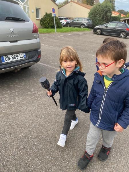 Mardi 17 octobre 2023, le matin,  les élèves de MS sont allés avec la flamme olympique faire un petit tour dans St Viaud !