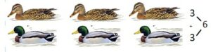 Sur le chemin, devant les arbres de naissance on a vu des grosses flaques. On a observé les petits ronds que faisaient les gouttes en tombant sur l’eau. Puis on a remarqué que l’eau faisait un miroir. On voyait les copains dans la flaque. Ensuite, en avançant sur le chemin il fallait compter les canards qui nageaient sur l’eau. On en a compté 6 : 3 mâles et 3 femelles.