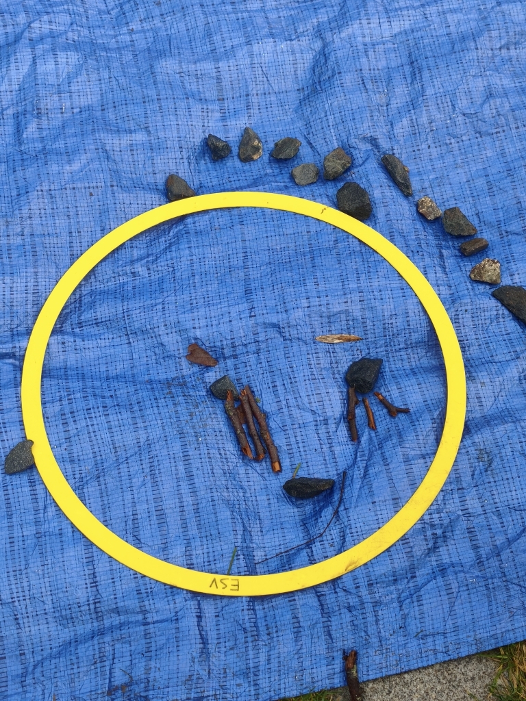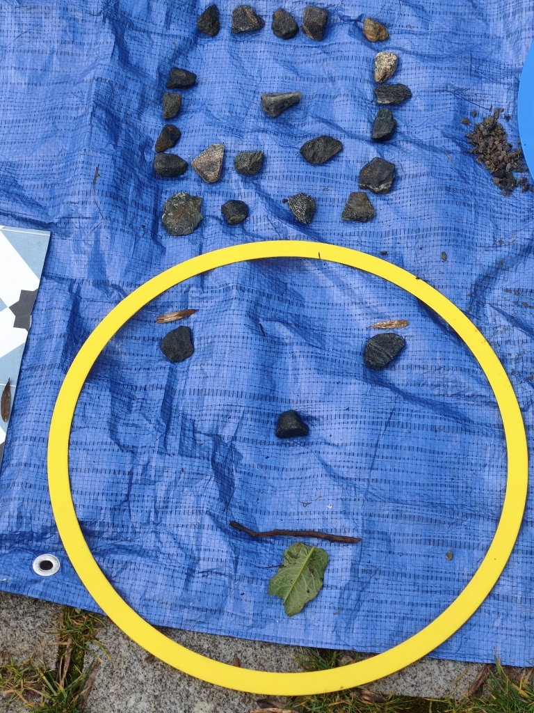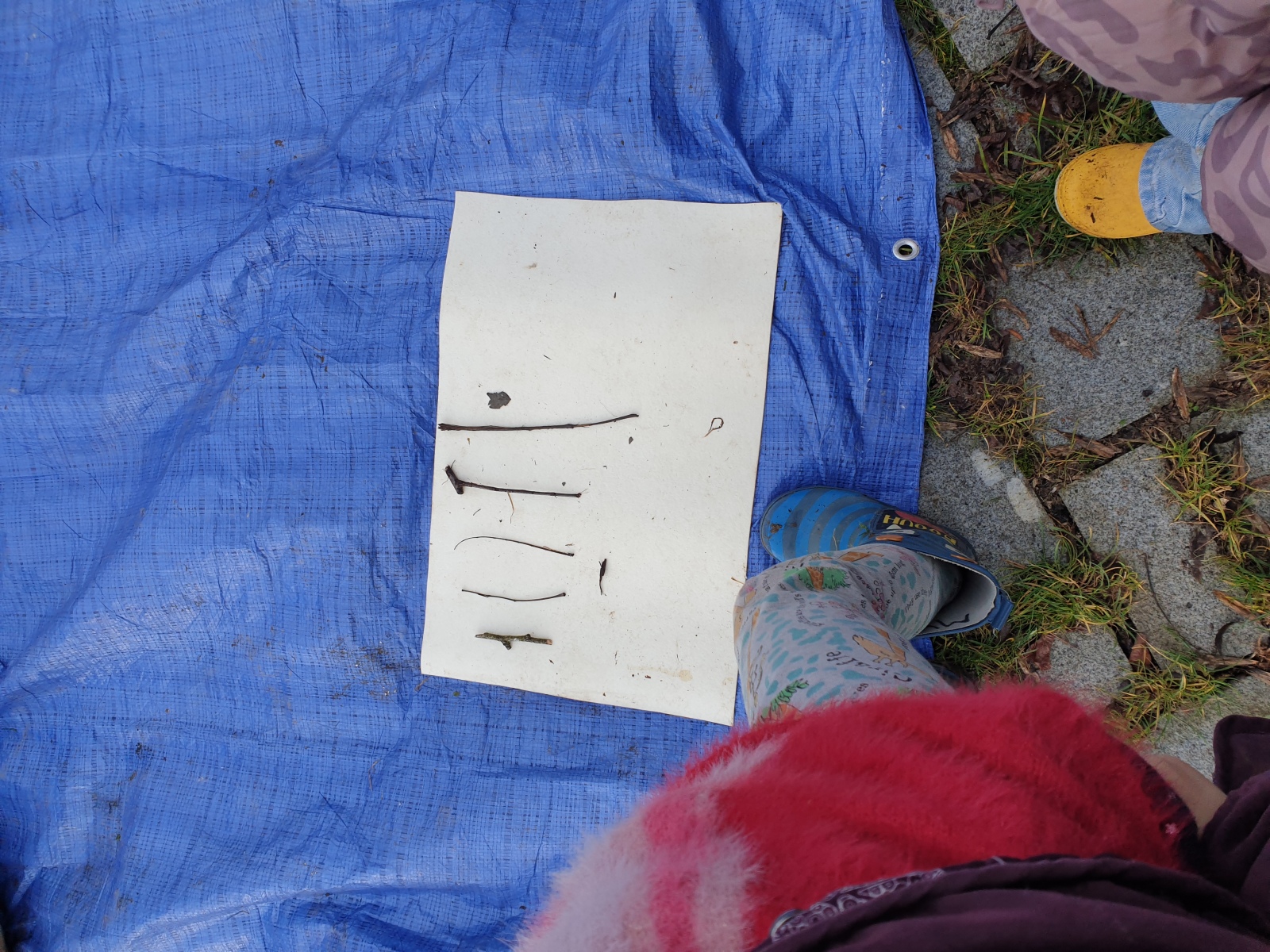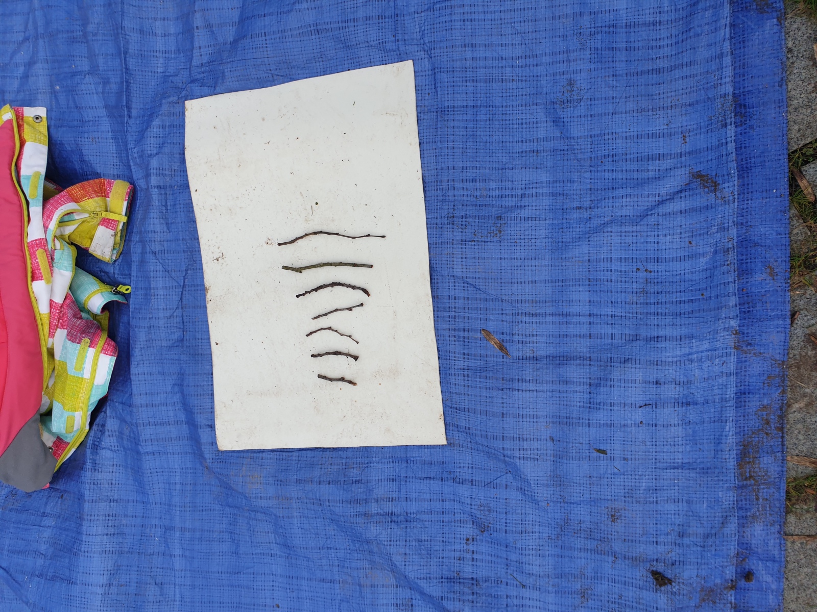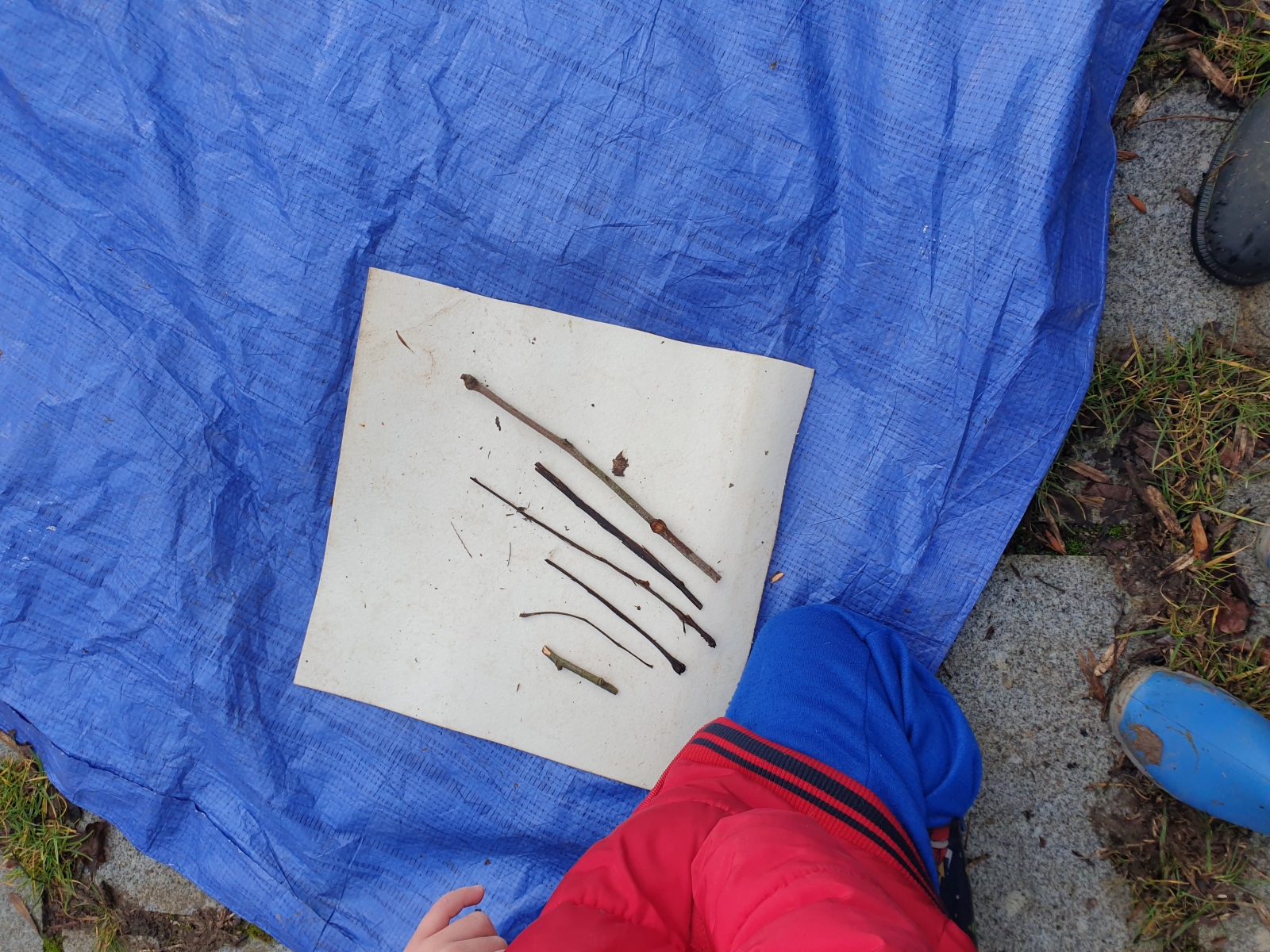 Nous avons également travaillé les maths en rangeant des brindilles par ordre de taille, puis l’écrit en formant la lettre initiale de notre prénom avec des brindilles. Nous avons bien appris !
