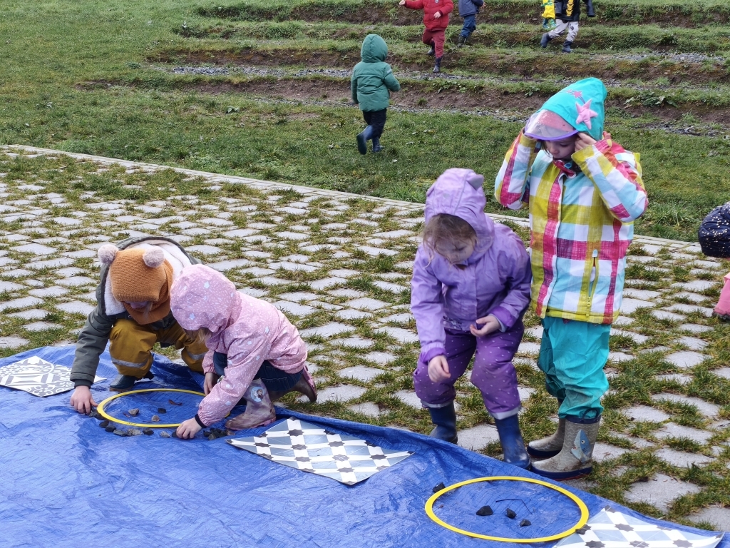 La classe de MS-GS 2 a pratiqué l’école dehors 3 fois durant cette troisième période. La pluie s’est invité légèrement durant ces séances, de quoi amuser les enfants qui étaient bien équipés !