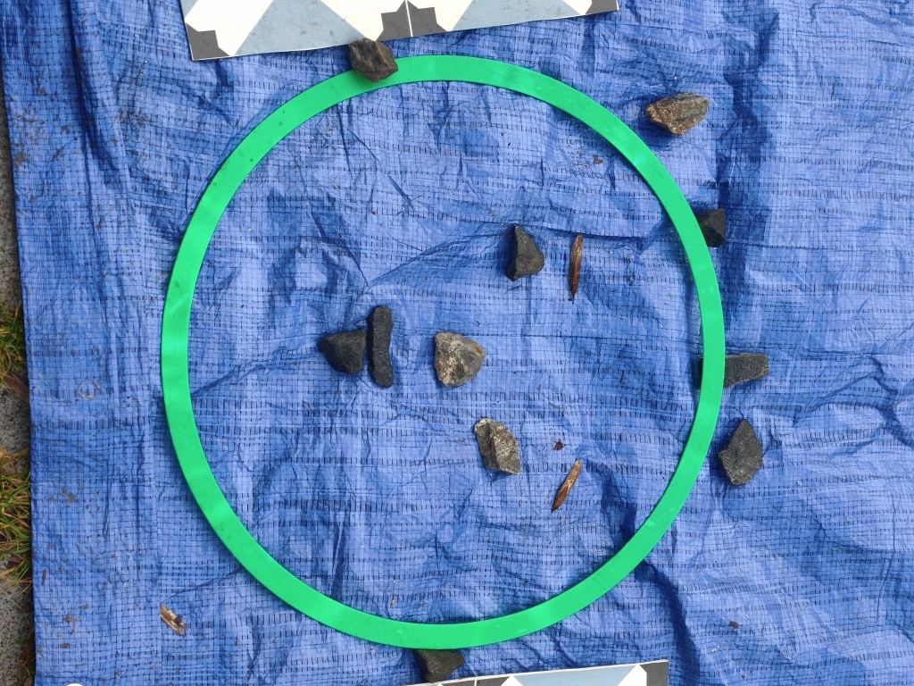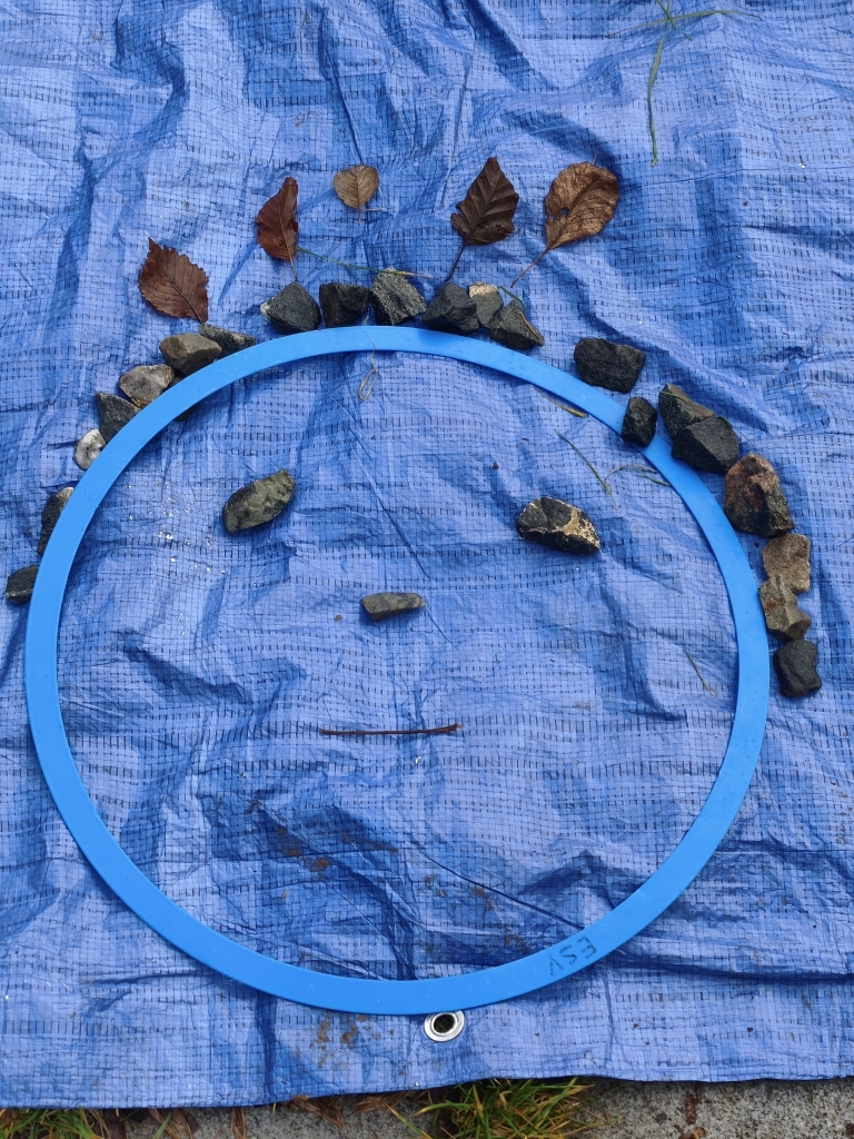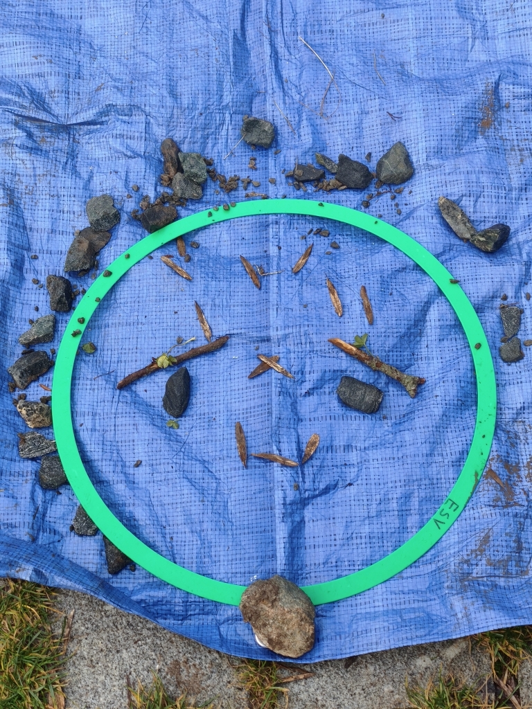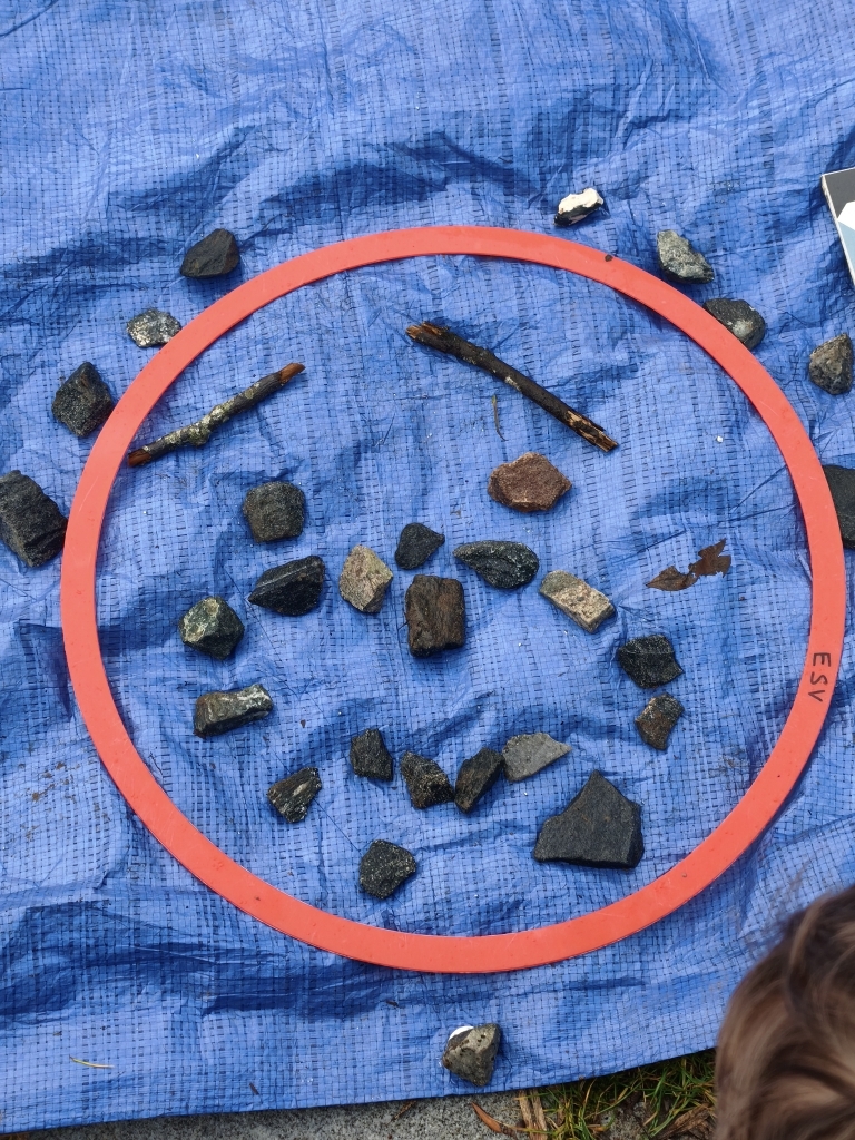 En reprenant le chemin pour l’école, nous nous sommes de nouveau arrêtés devant les grosses flaques. Et là on a essayés de trouver des choses qui flottent et des choses qui coulent. L’herbe flotte, les feuilles au début flottent puis elles coulent. Les cailloux et les glands coulent.
