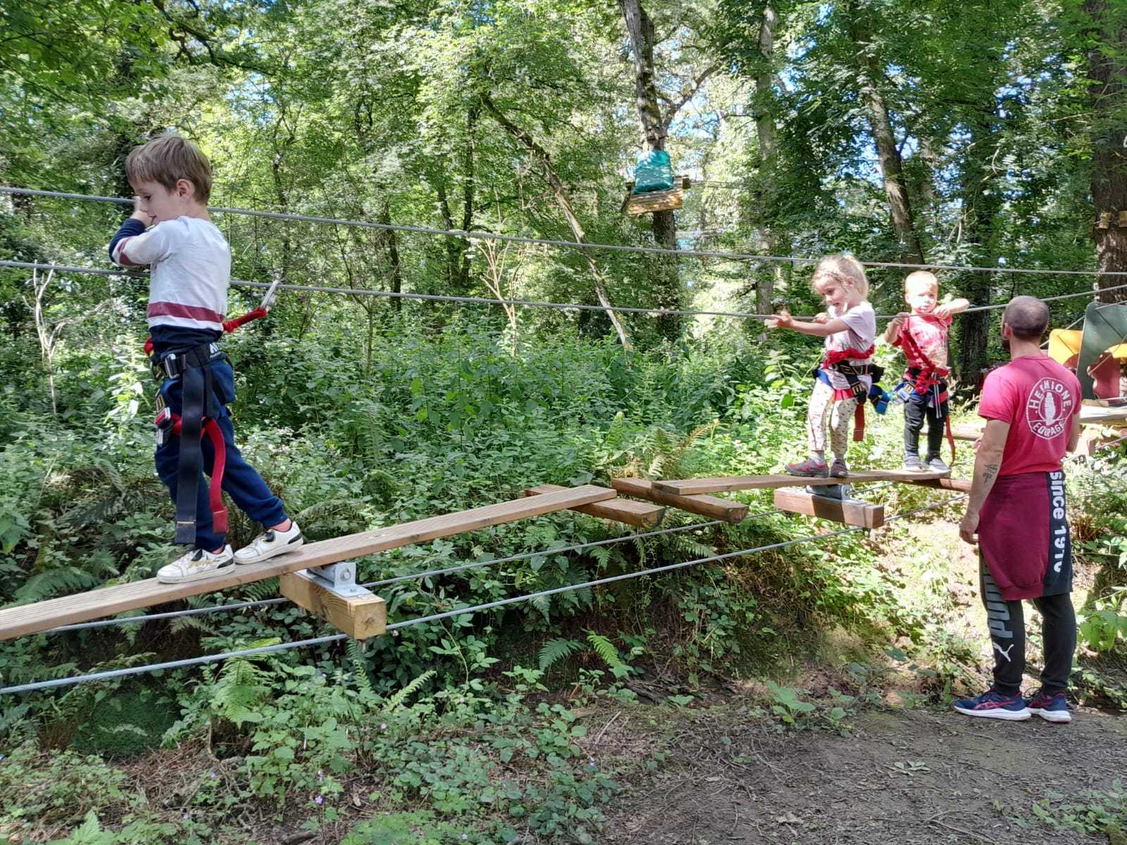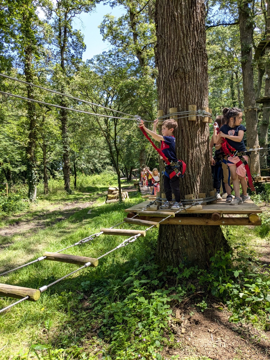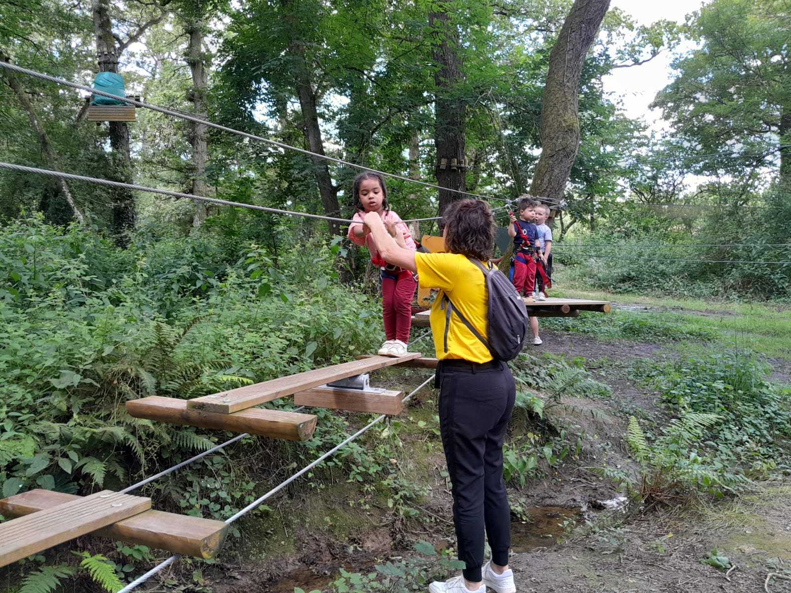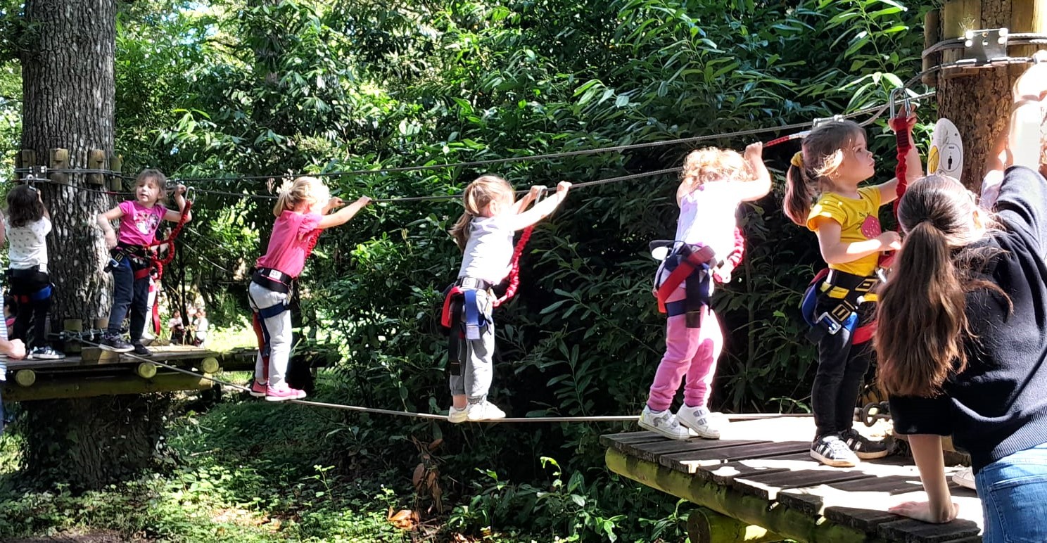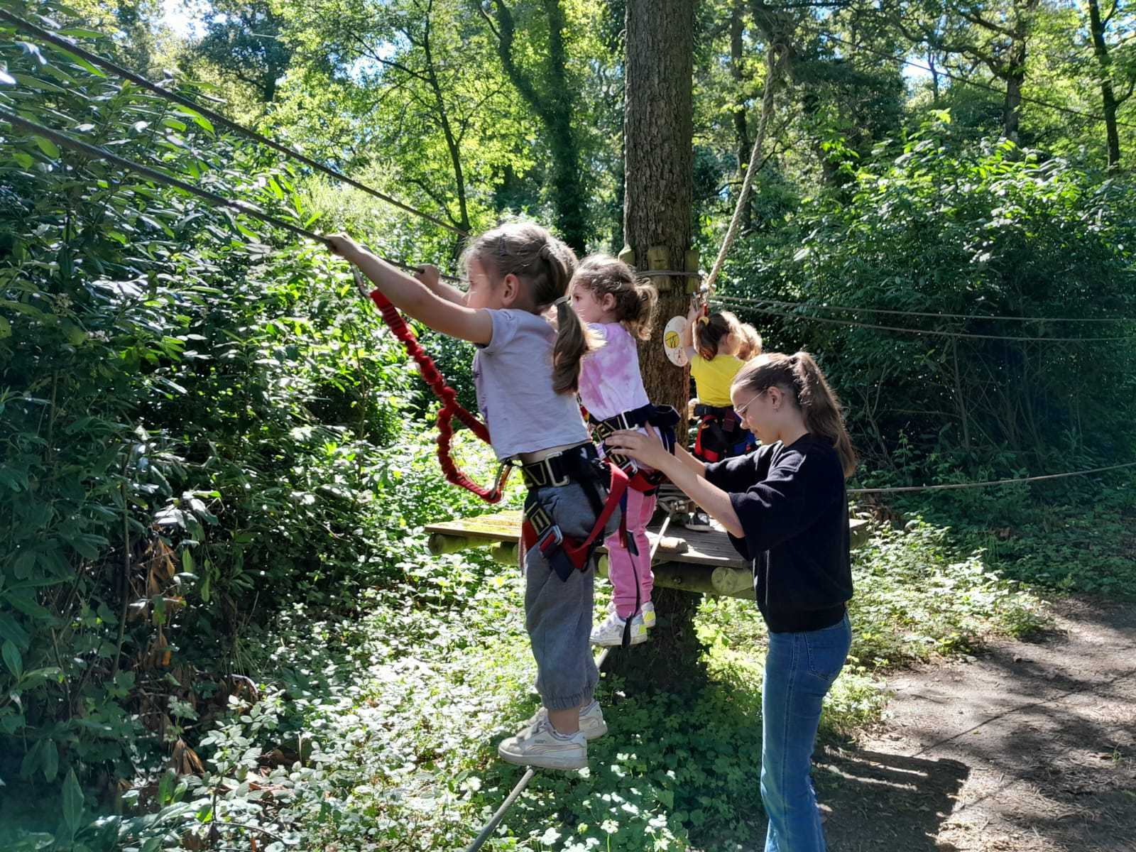 Après répartition des groupes sur les différentes activités, les MS commencent par l’accrobranche !