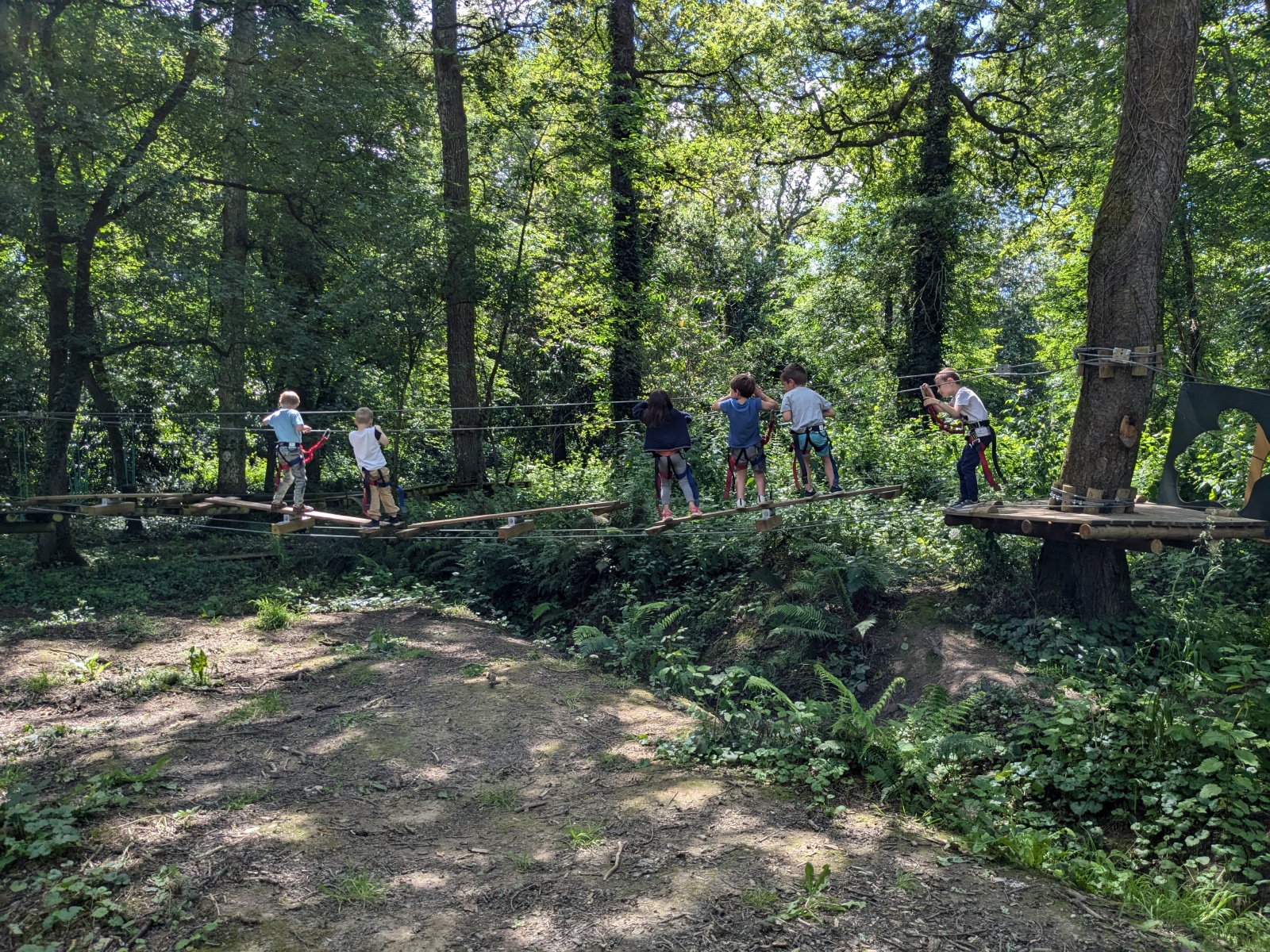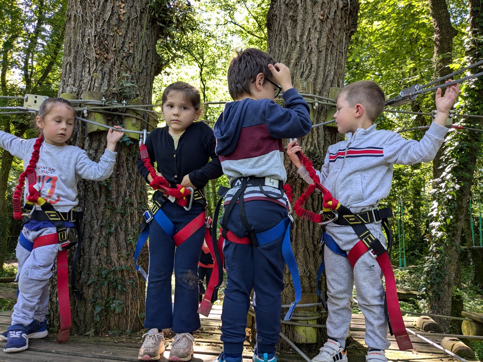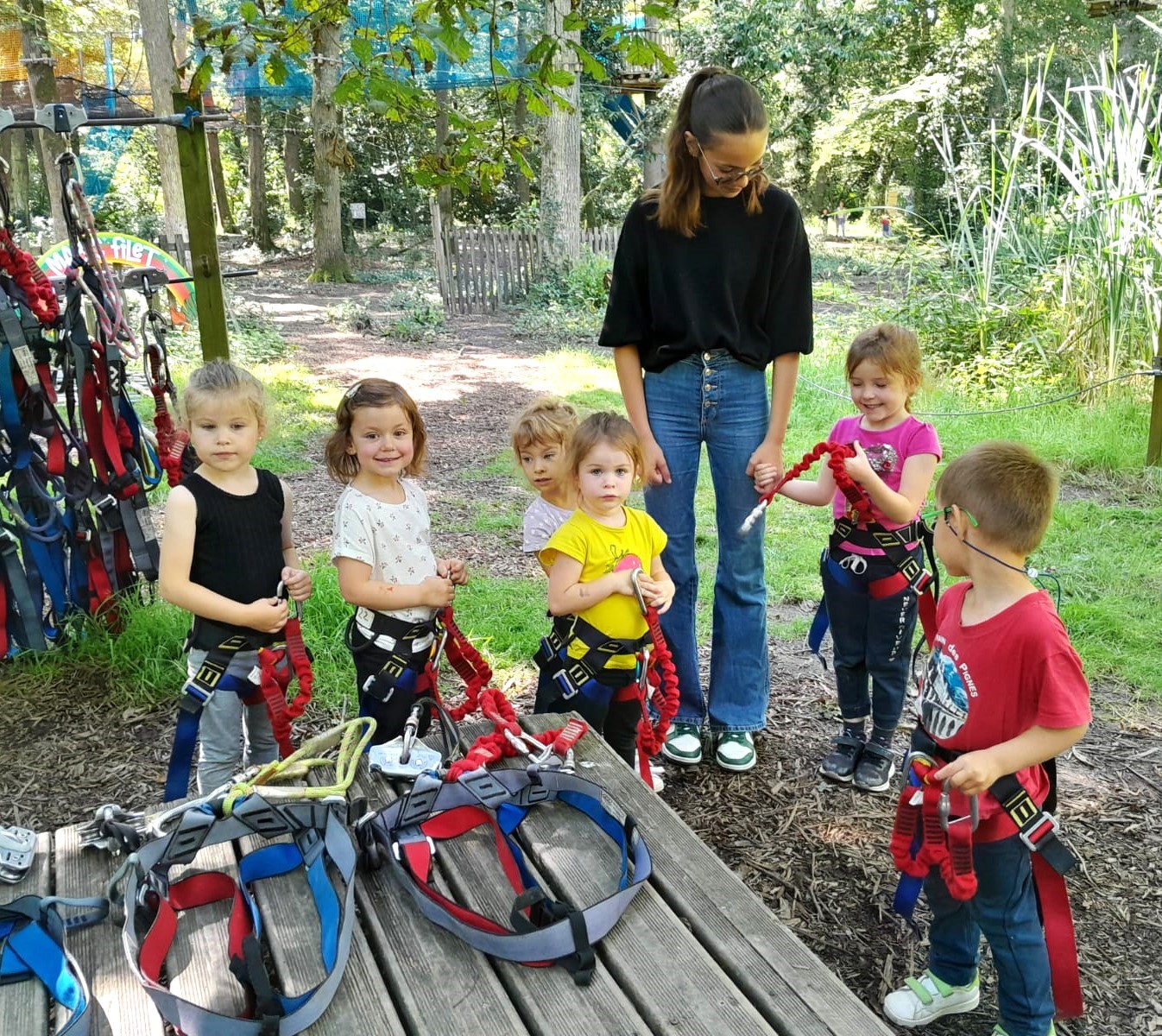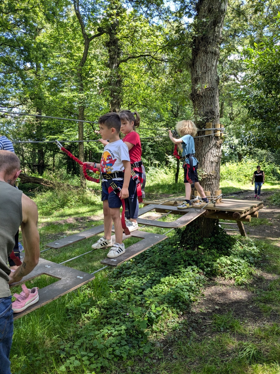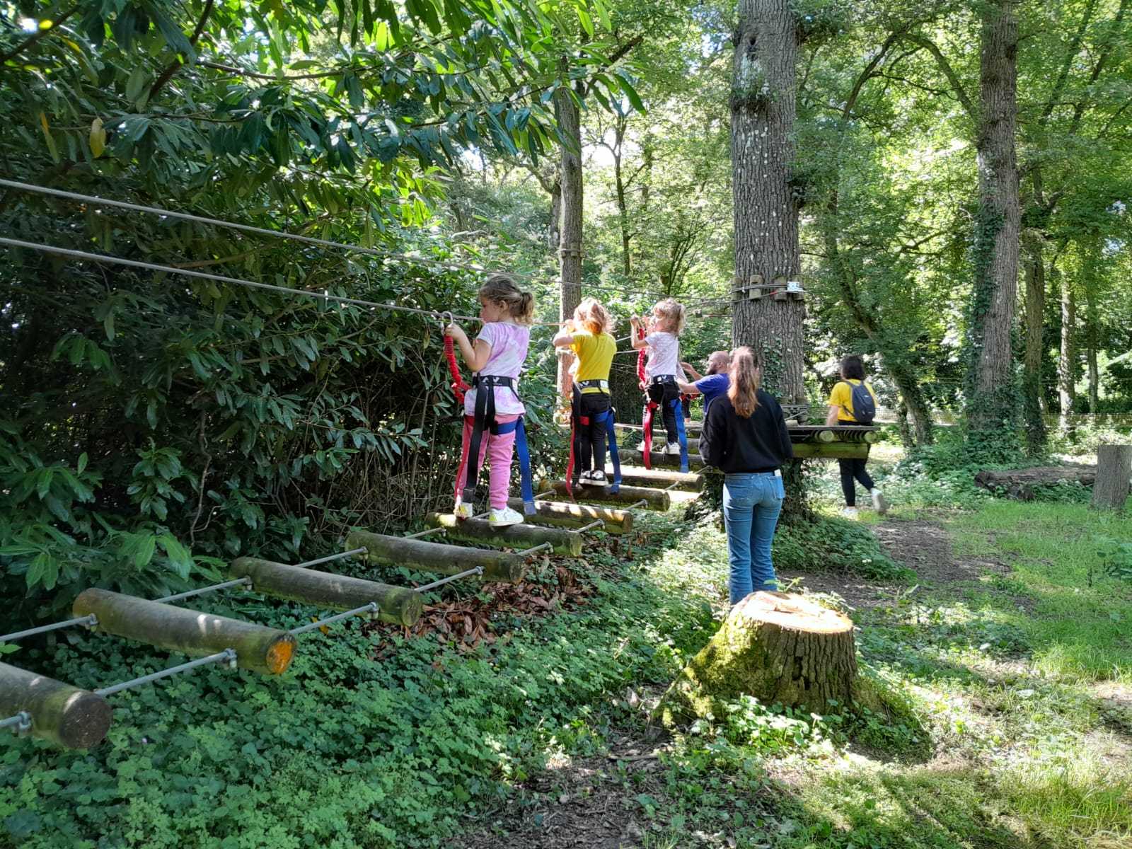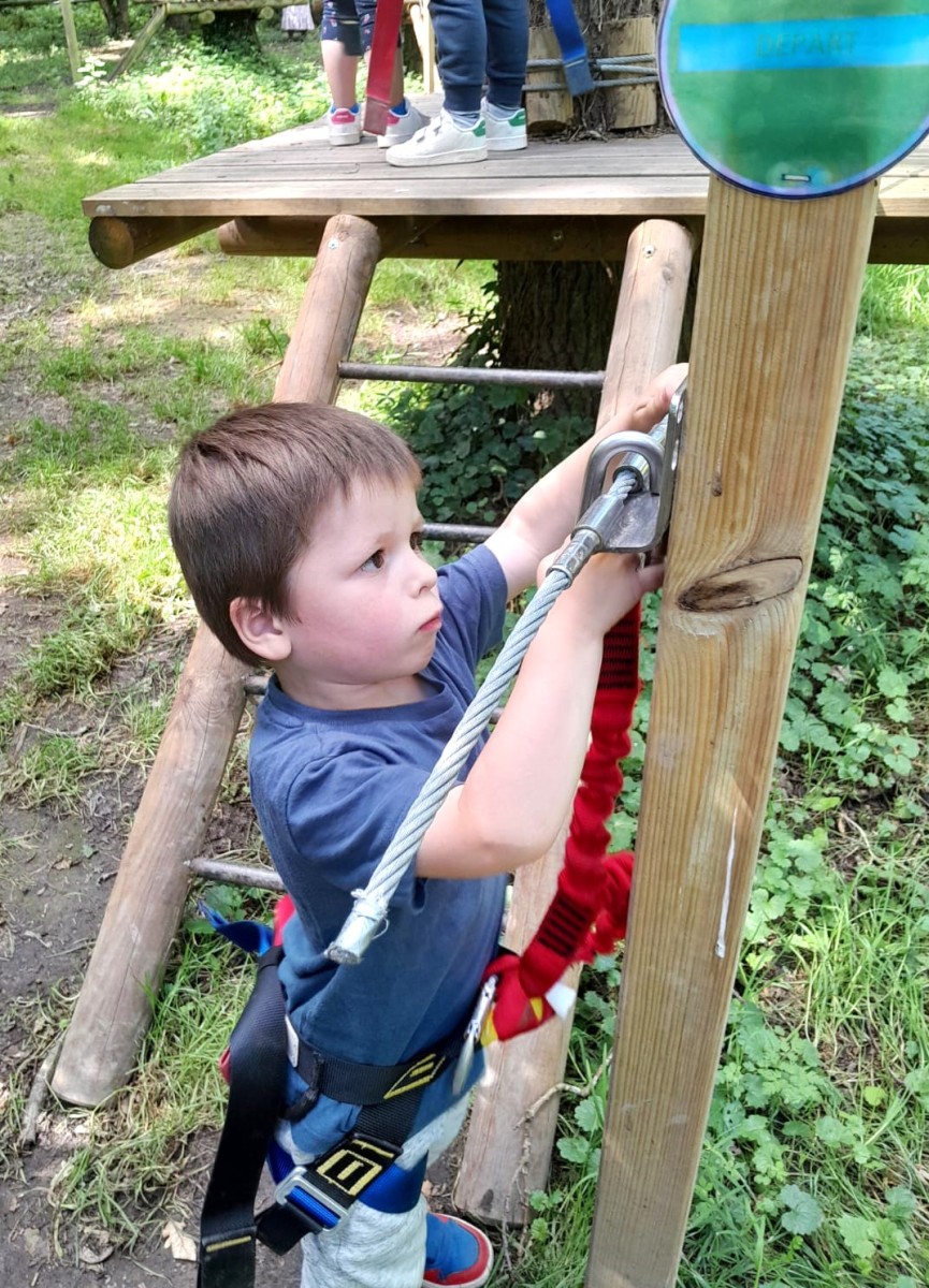 Après répartition des groupes sur les différentes activités, les MS commencent par l’accrobranche !