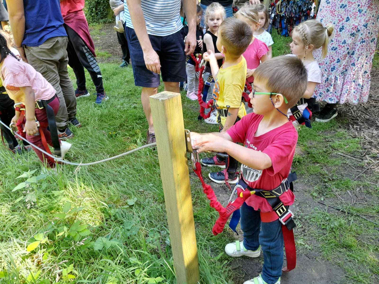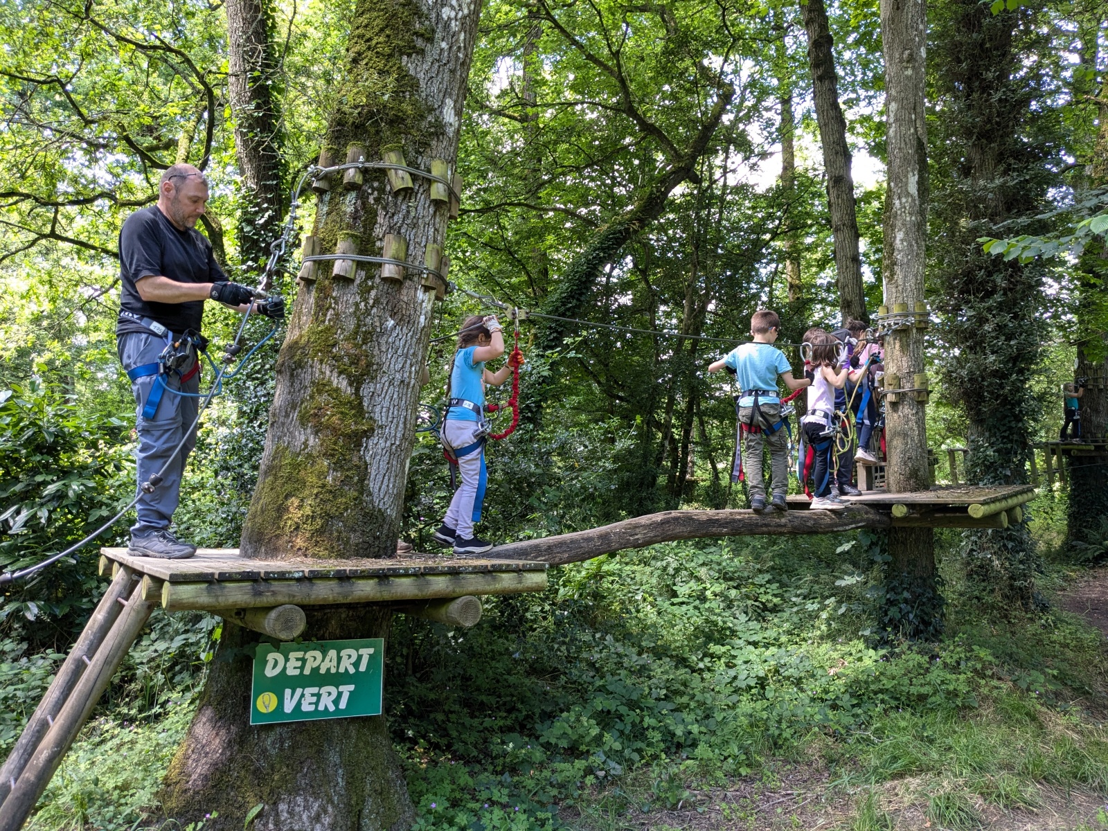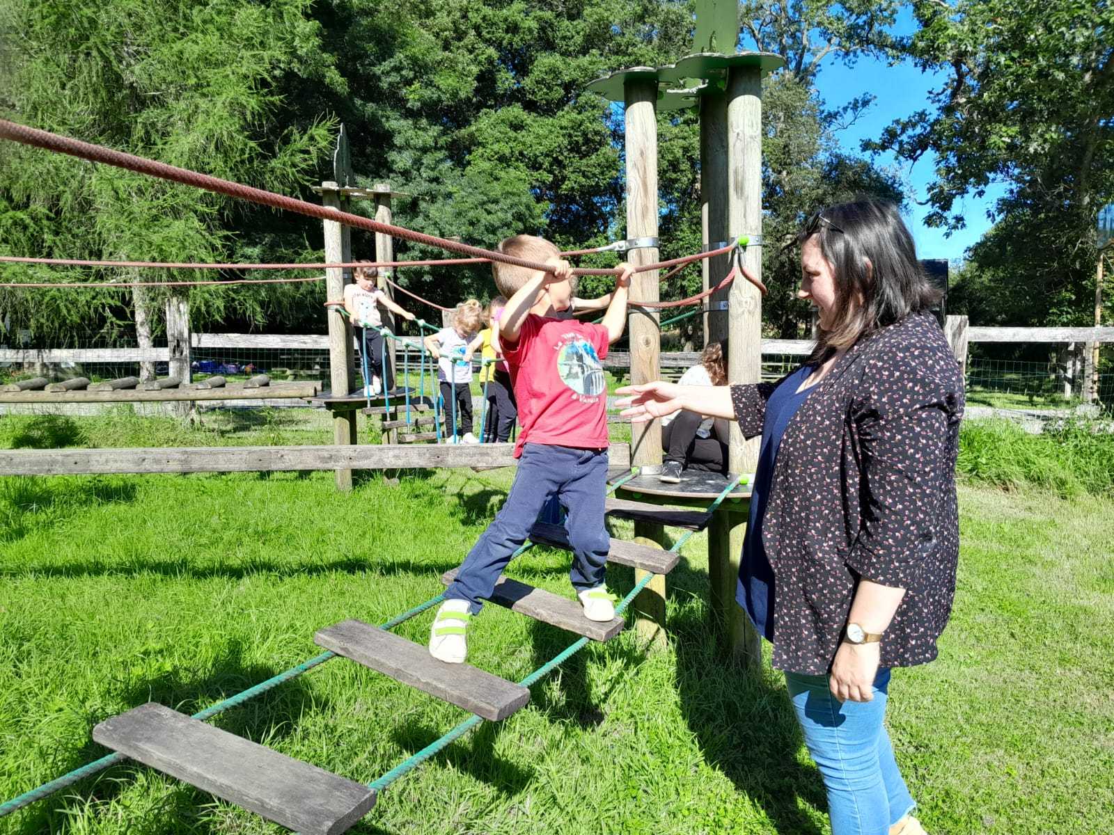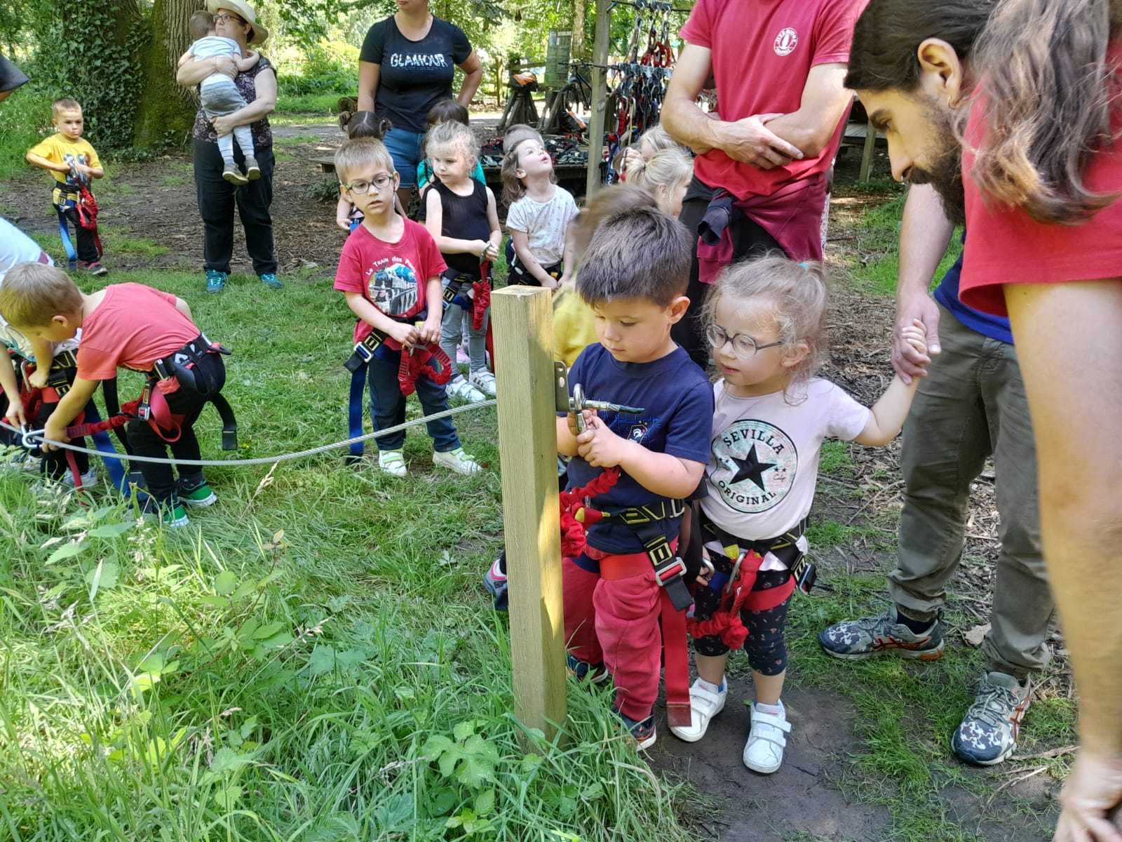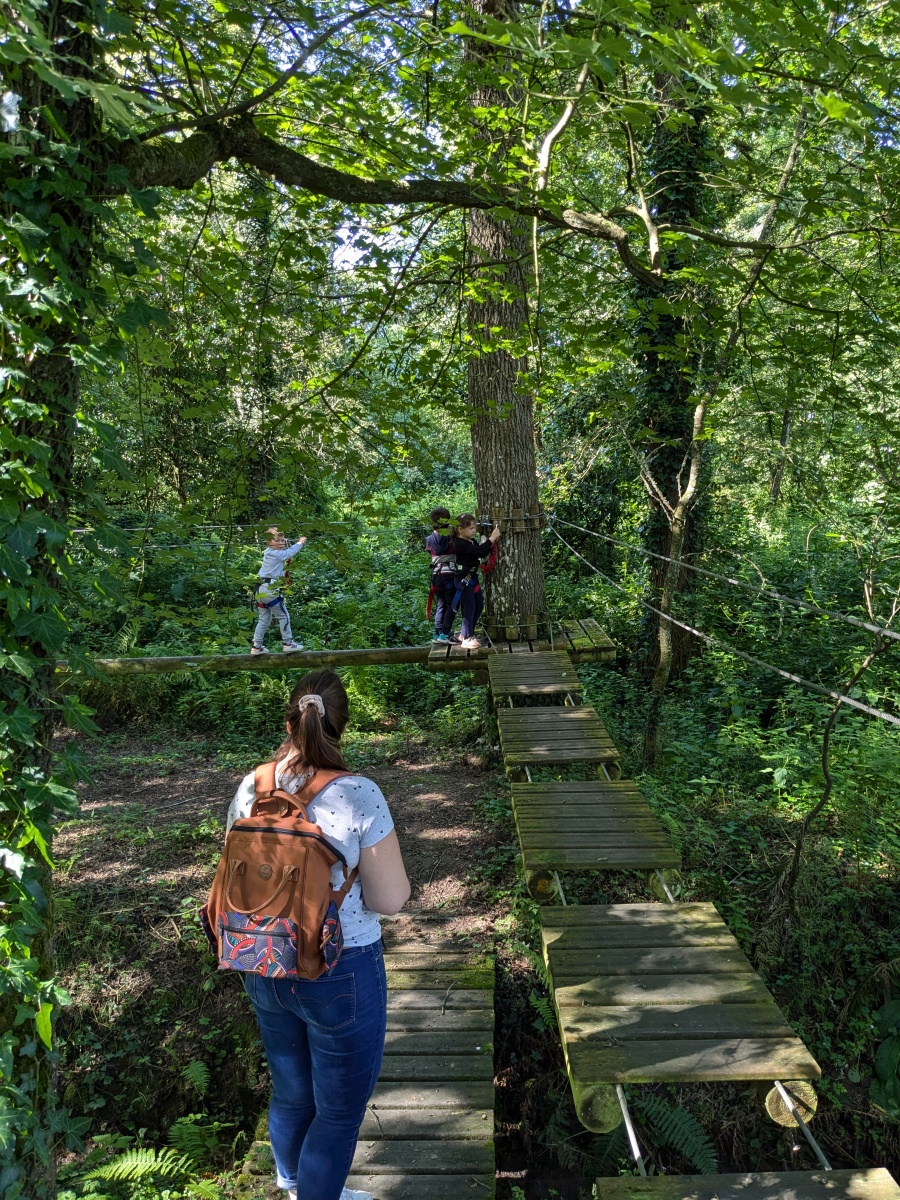Après répartition des groupes sur les différentes activités, les MS commencent par l’accrobranche !