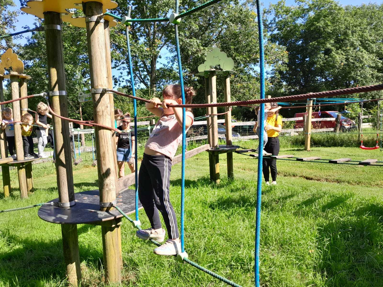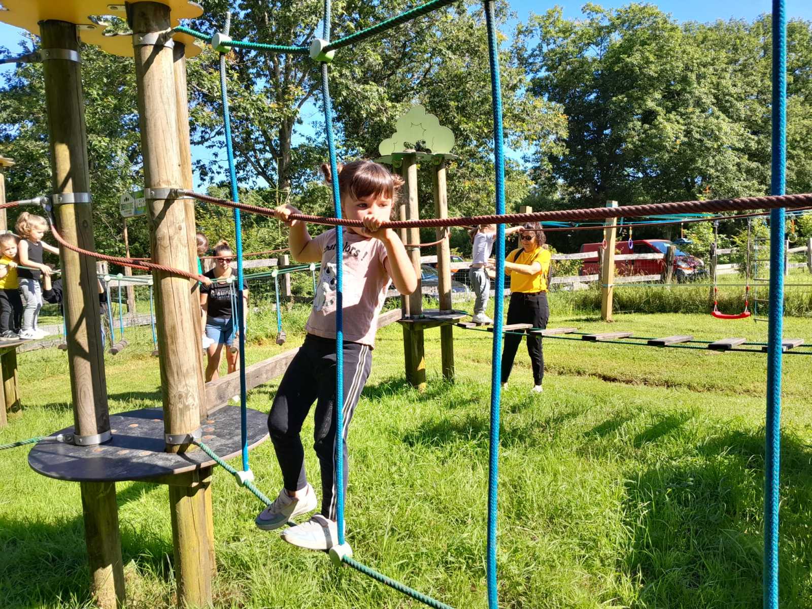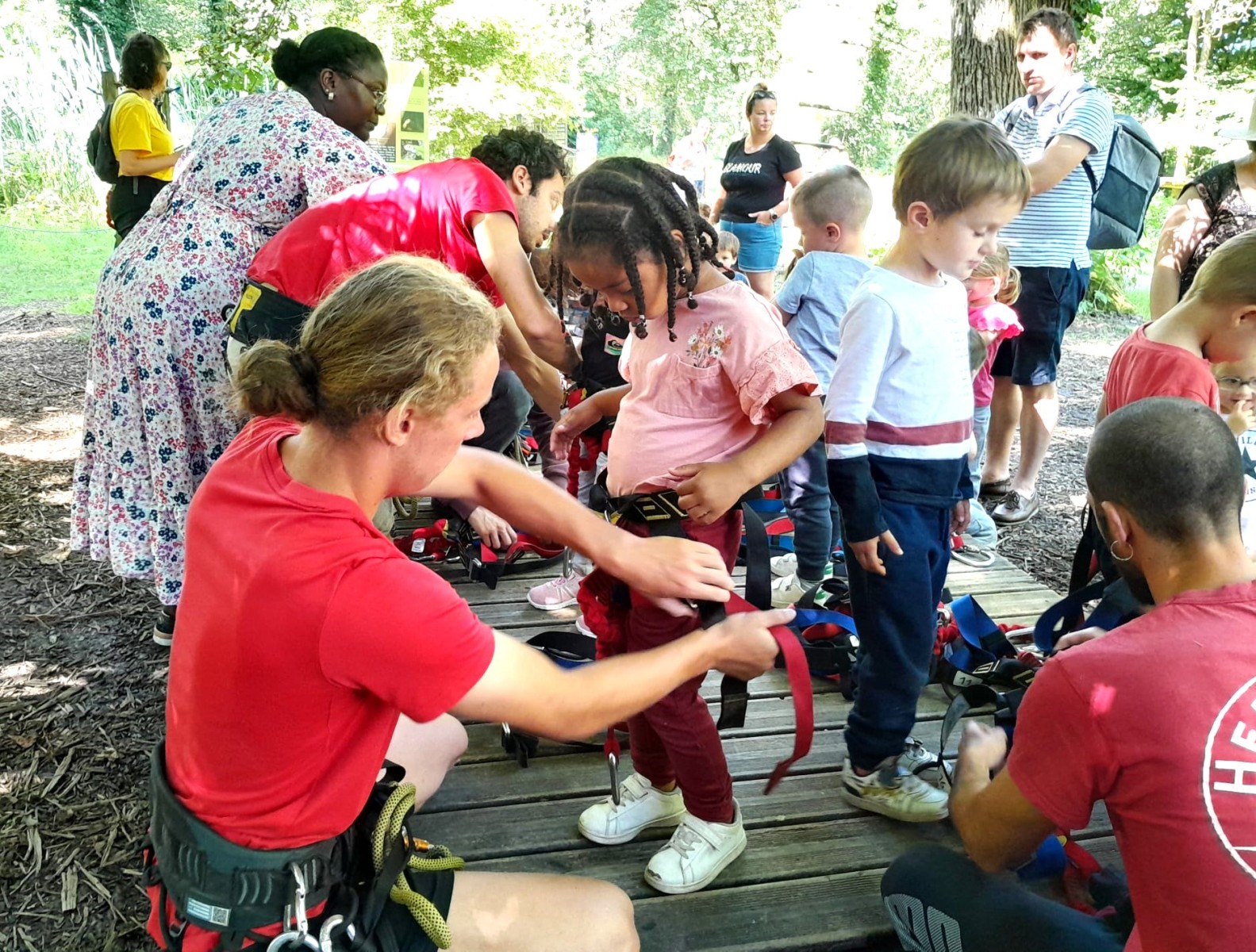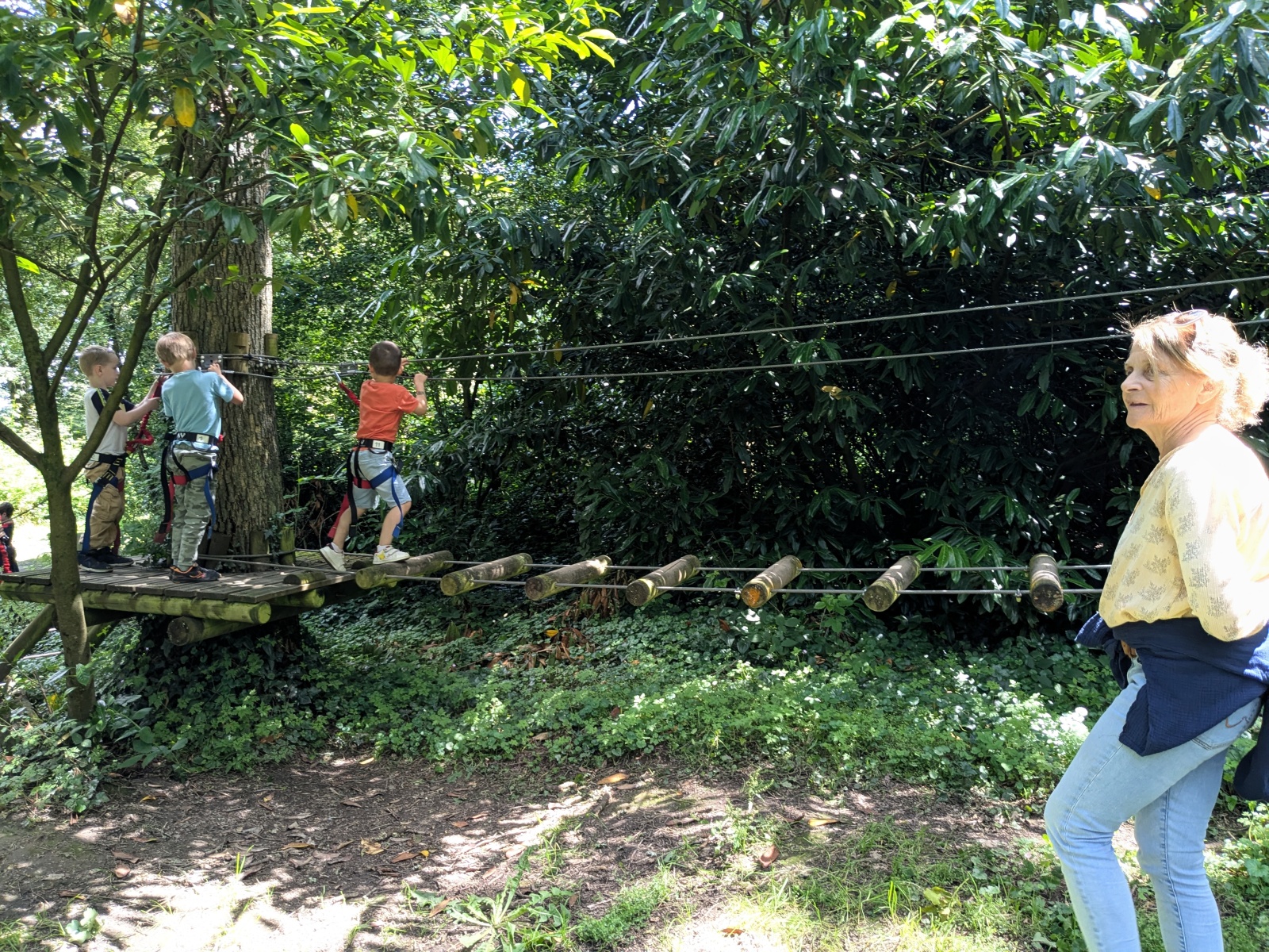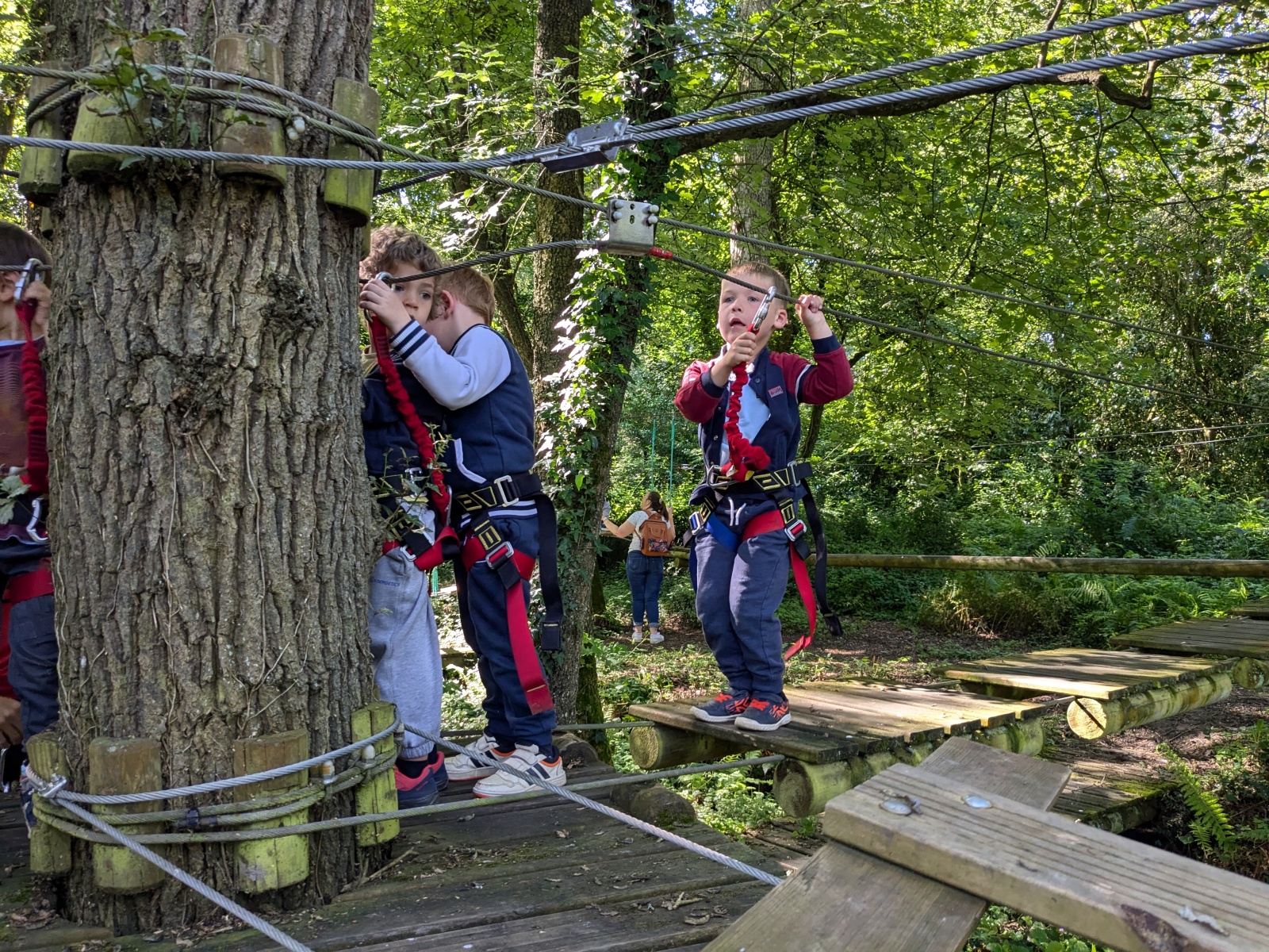 Après répartition des groupes sur les différentes activités, les MS commencent par l’accrobranche !