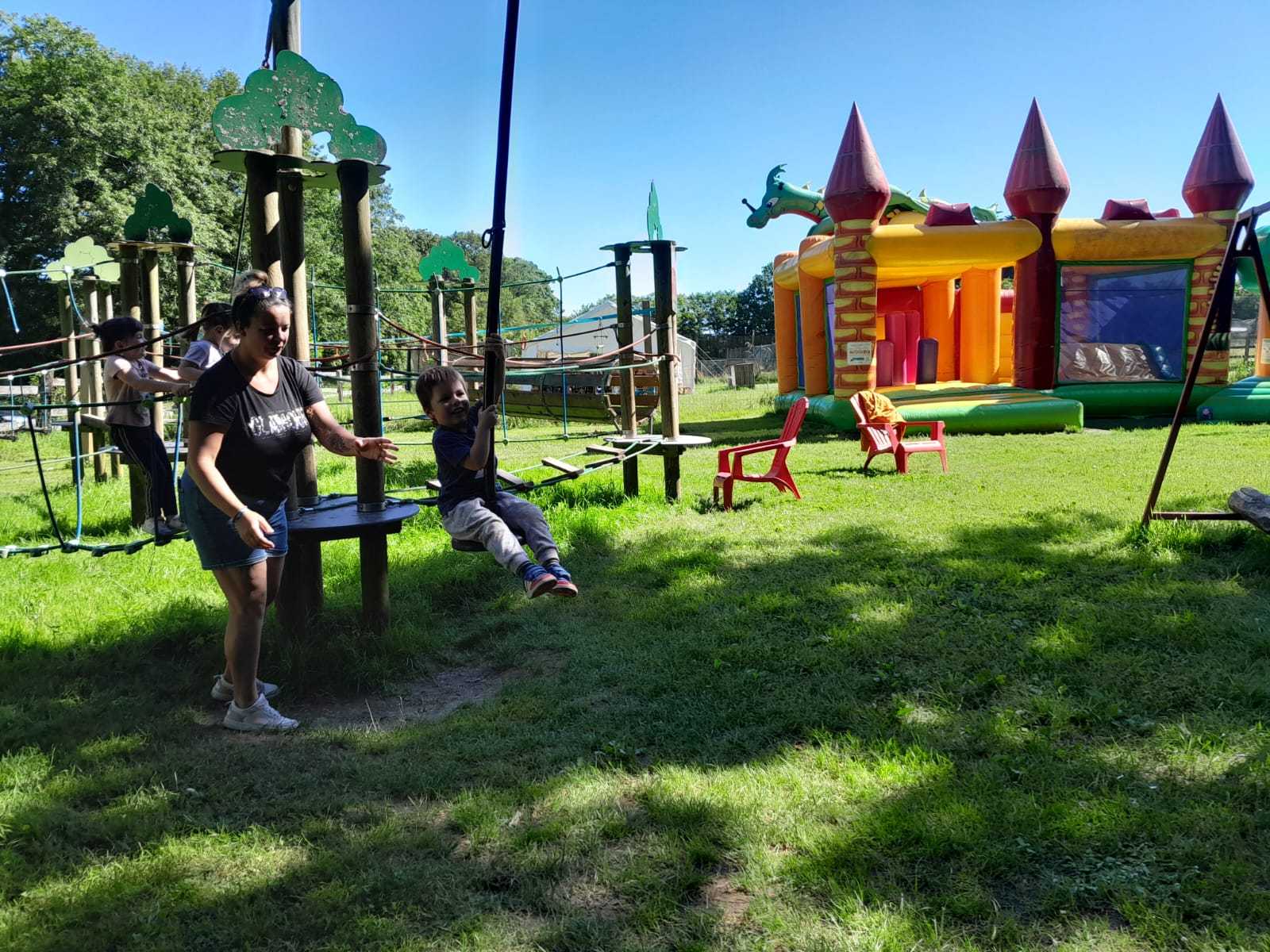 Un petit temps calme sous les arbres avec des livres et c’est reparti pour le « Magic Land » ! C’est une zone de jeux réservés aux plus jeunes pour se défouler, rigoler, sauter dans tous les sens !
