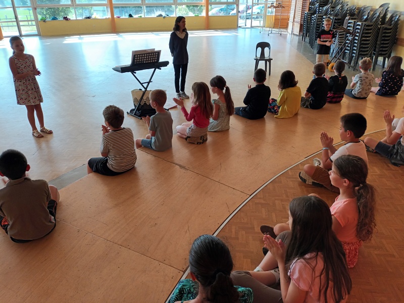 Durant les mois de mai et juin, les classes de CP, CE1-CE2 et CE2-CM1 ont bénéficié de séances de musique et de chant avec Sara Pocreau sur le thème de l’art autour du monde.
