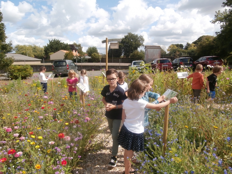 Dès le premier jour de la rentrée, en arrivant à l’école, nous avons découvert le magnifique labyrinthe pédagogique tout en fleurs.