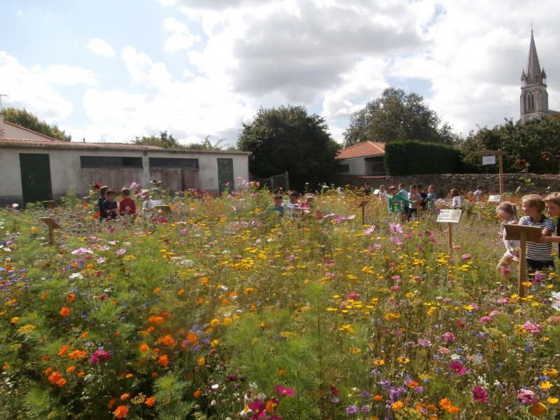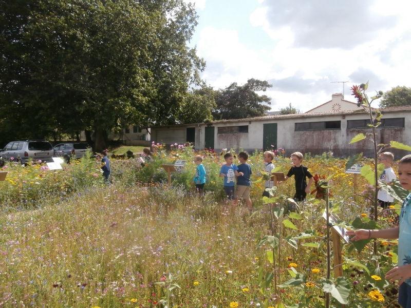 Nous sommes allés le parcourir avec notre maîtresse. Il y avait des fleurs de toutes les couleurs et de nombreux insectes qui butinaient. Au cours de notre visite, nous avons lu les affichages qui nous indiquaient le nom des fleurs.