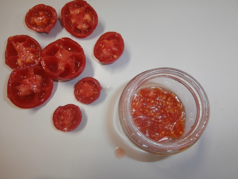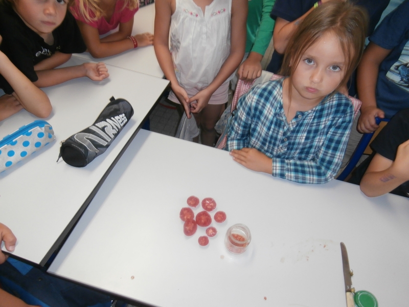 Nous sommes également allés visiter notre petit jardin à l’école. Nous avons cueilli des tomates pour y récolter les graines que nous avons déposées dans un pot. Nous avons ensuite ajouté de l’eau. Quelques jours plus tard, nous avons vidé l’eau pour ne conserver que les graines que nous avons déposées sur un papier absorbant pour les laisser sécher. Nous en avons profité pour goûter la chair des tomates. C’était délicieux ! Nous sèmerons ces graines dans notre petit jardin au printemps prochain.