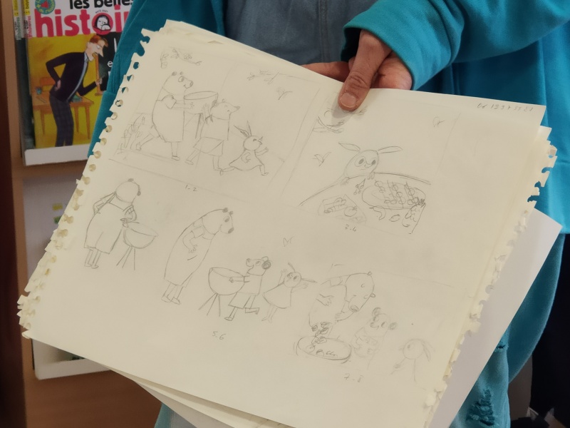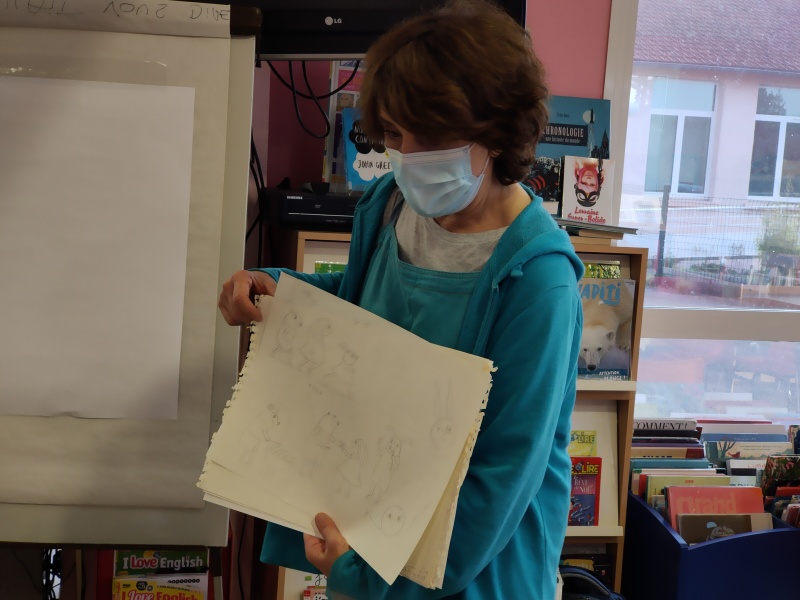 Anne Isabelle Le Touzé a expliqué comment elle réalisait ses dessins. Elle a montré les planches avec ses différents essais.
