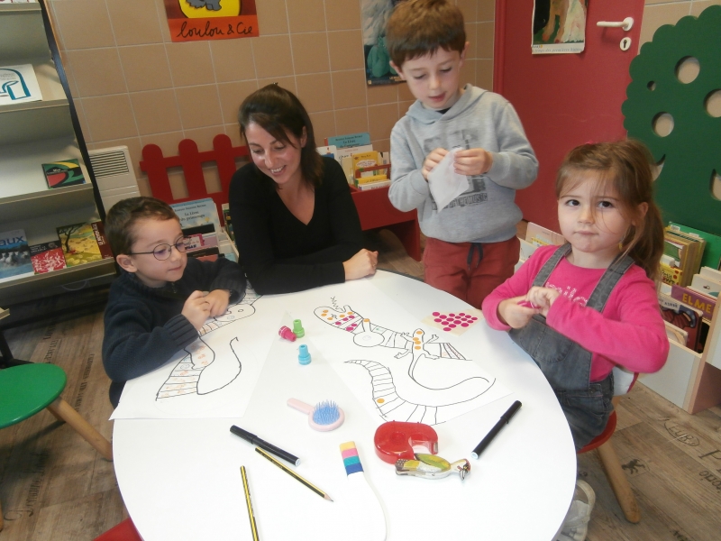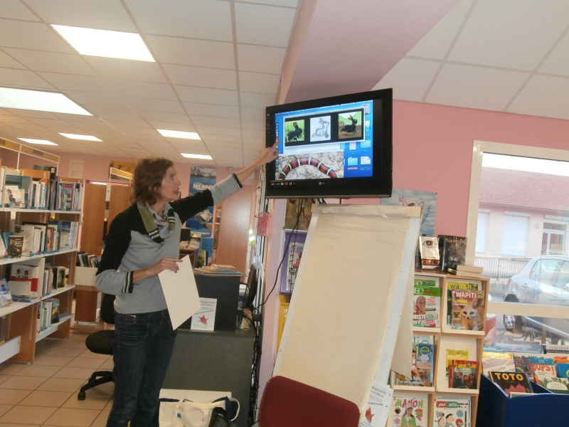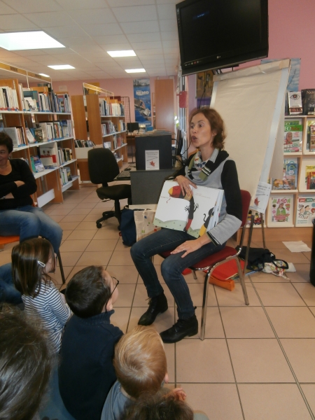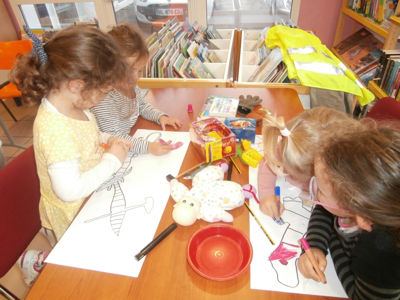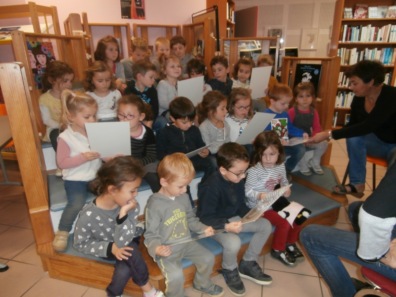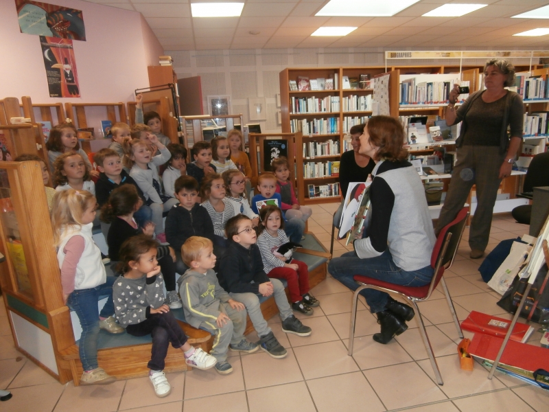 Le jeudi 5 octobre, les élèves de MS et quelques élèves de GS ont rencontré l’illustratrice, Aude MOREL, à la bibliothèque.