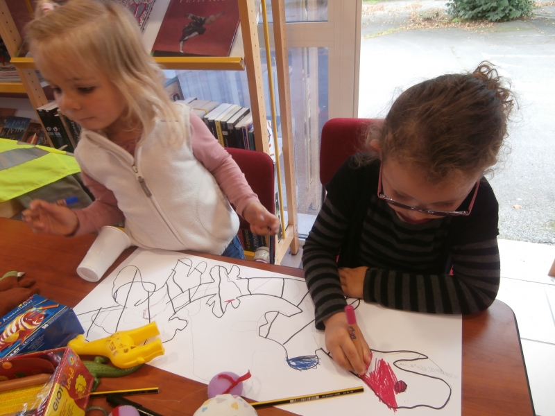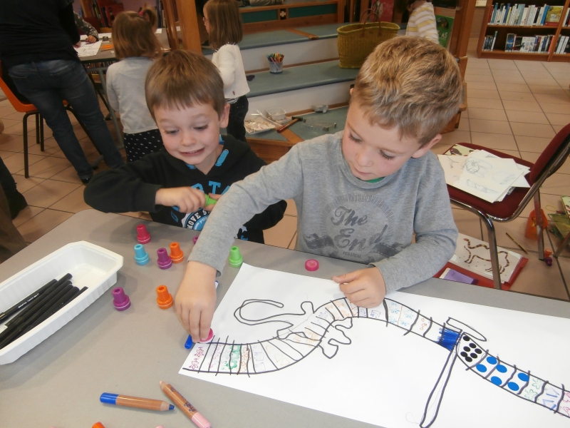 De retour en classe, les élèves ont pu expliquer, à leurs camarades n’ayant pas participé à cette rencontre, comment dessiner Baliverne. Certaines productions seront affichées sur les murs de la bibliothèque . N’hésitez pas à vous déplacer.