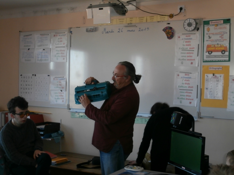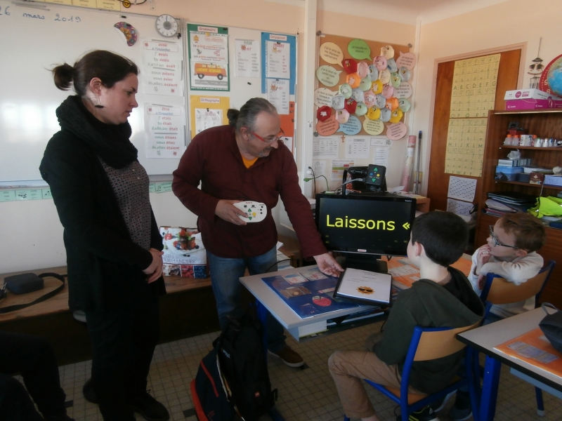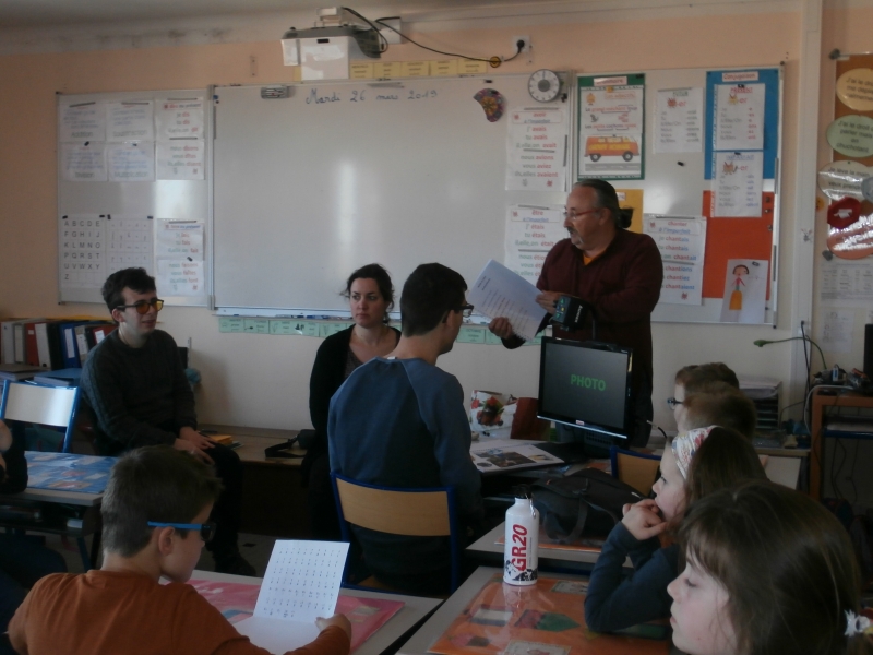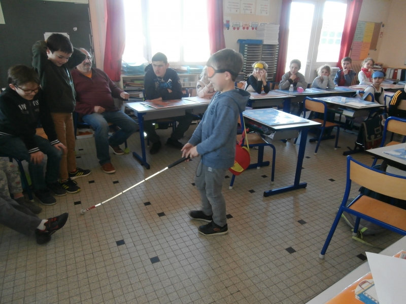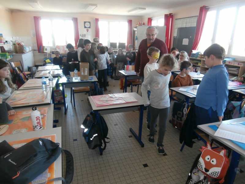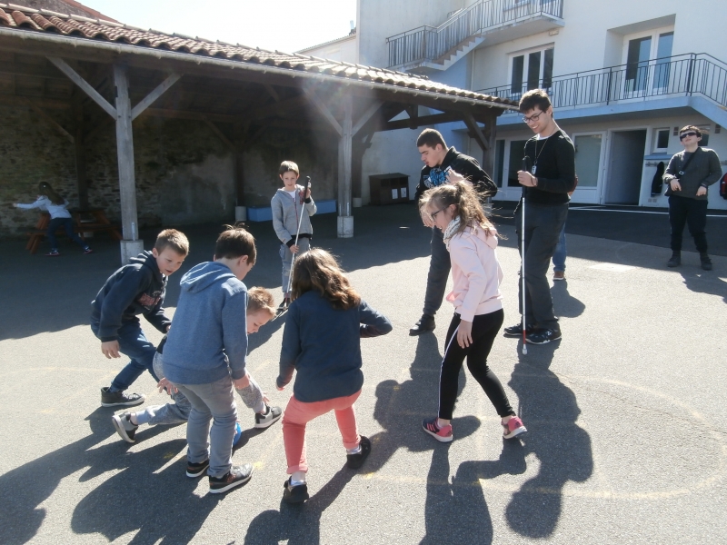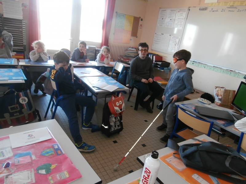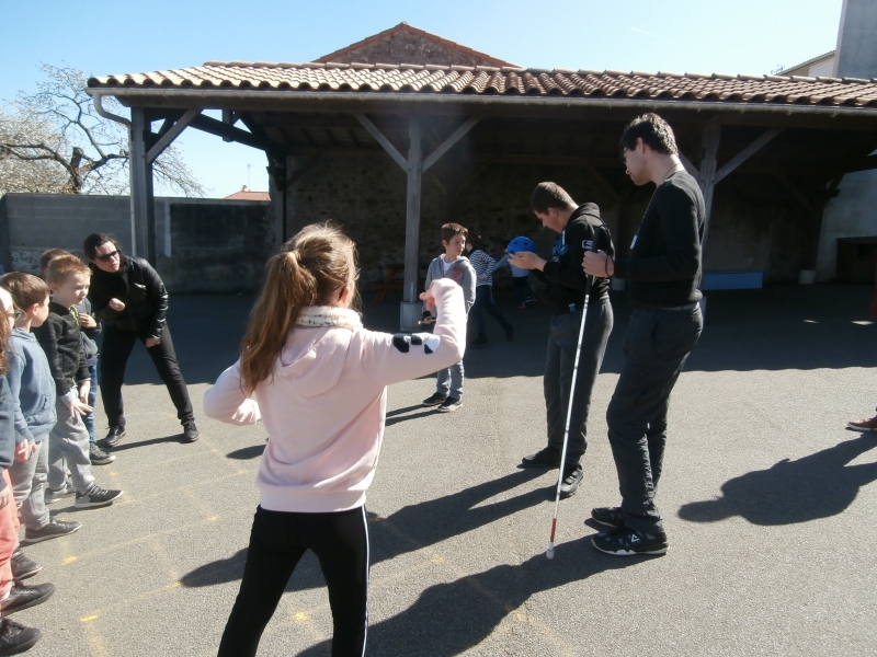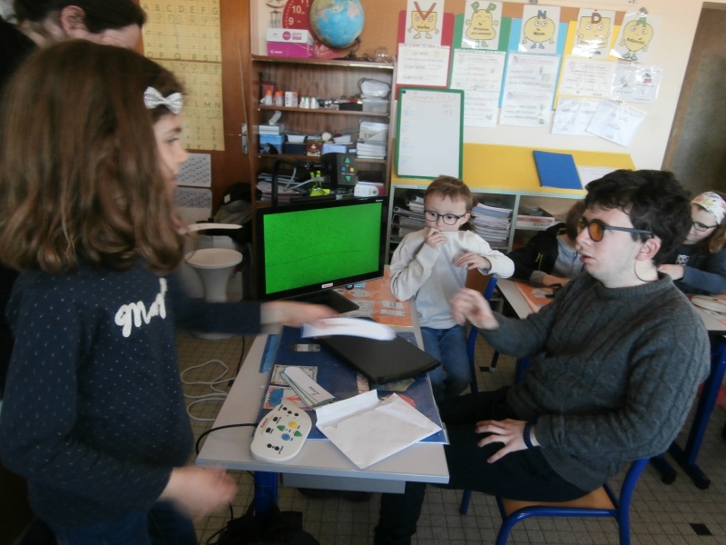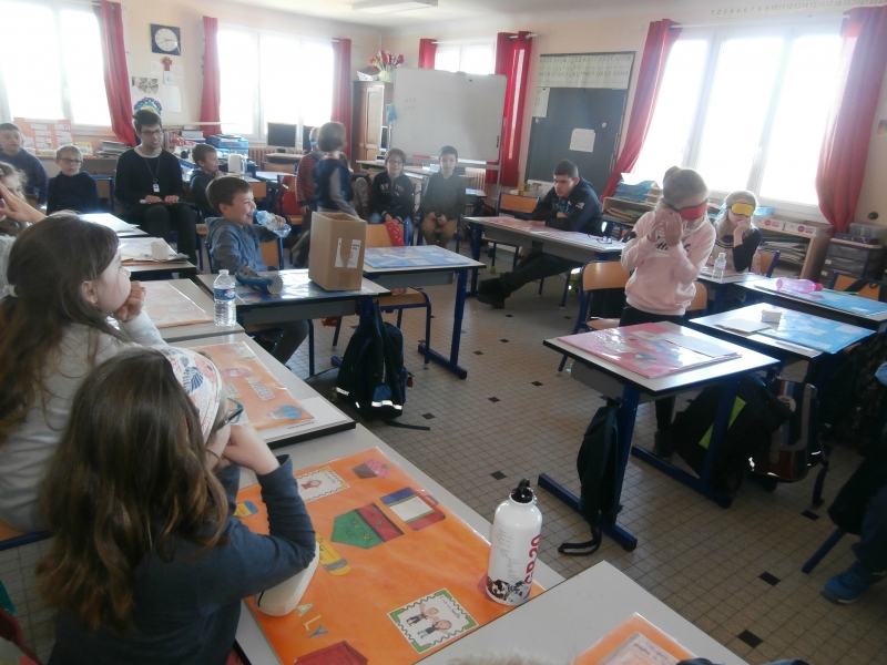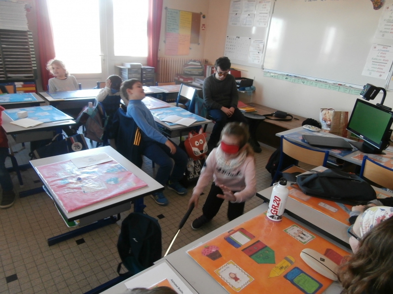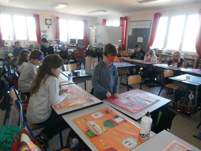 Le mardi 26 mars, nous avons  eu le plaisir d’accueillir dans notre classe  cinq jeunes aveugles ou malvoyants de l’Institut des Hauts Thébaudières de Vertou : Maurine, Raphaël, Jaouen, Pierre Alexis et Fabien. Ils sont âgés de 17 à 20 ans et  étaient accompagnés de leurs éducateurs Gaby et Anne-Laure.