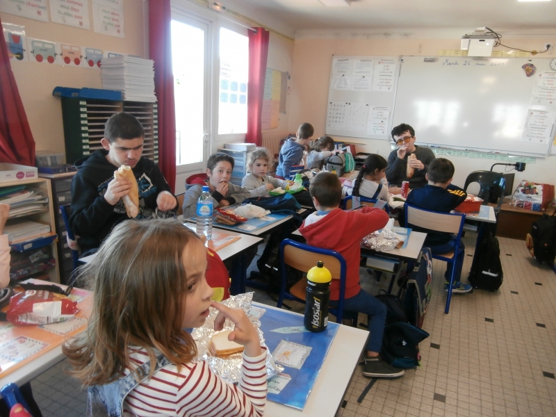 Dès leur arrivée, nous avons fait connaissance par un échange de questions. Puis nous avons pris le pique-nique ensemble.