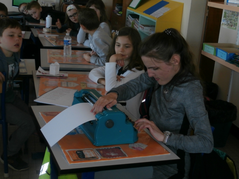 L’après – midi, Maurine nous a montré comment elle utilisait la machine Perkins  permettant d’écrire en braille. Elle est munie de six touches correspondant à chacun des six points pour écrire l’alphabet en braille et d’une touche d’espacement.