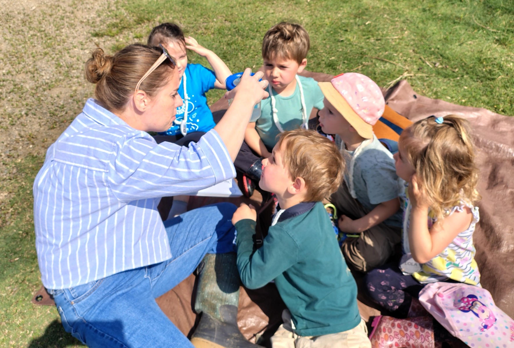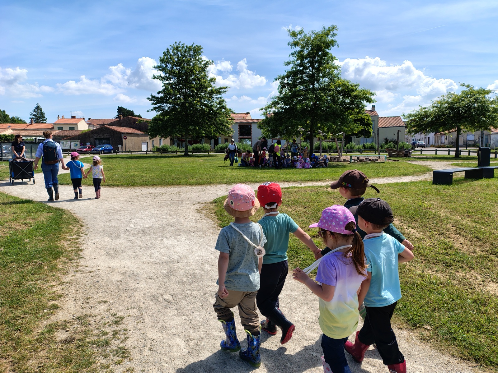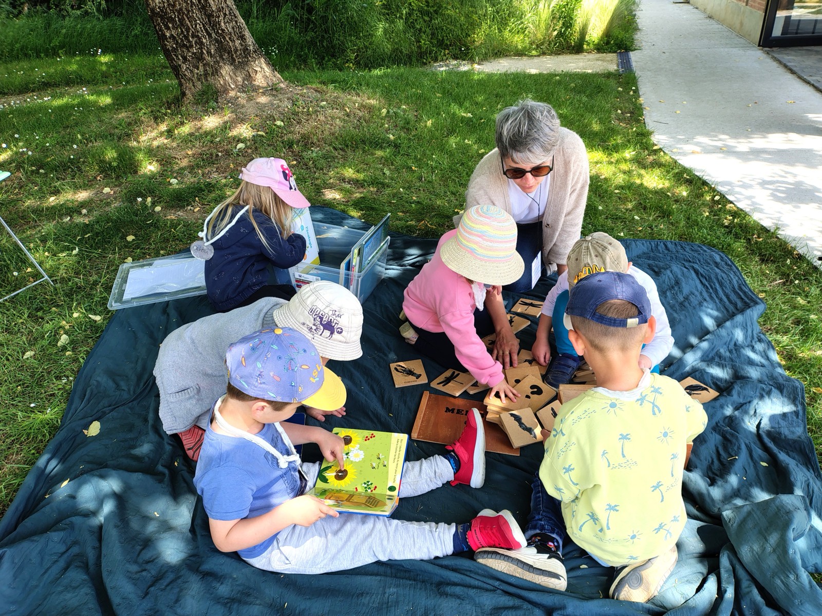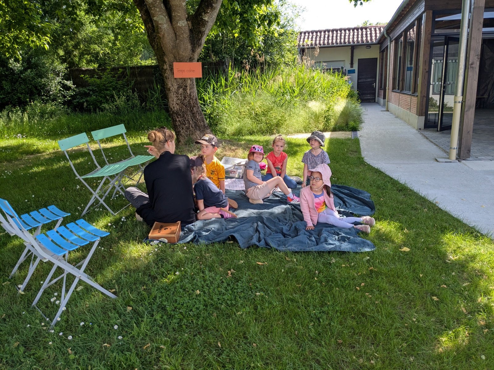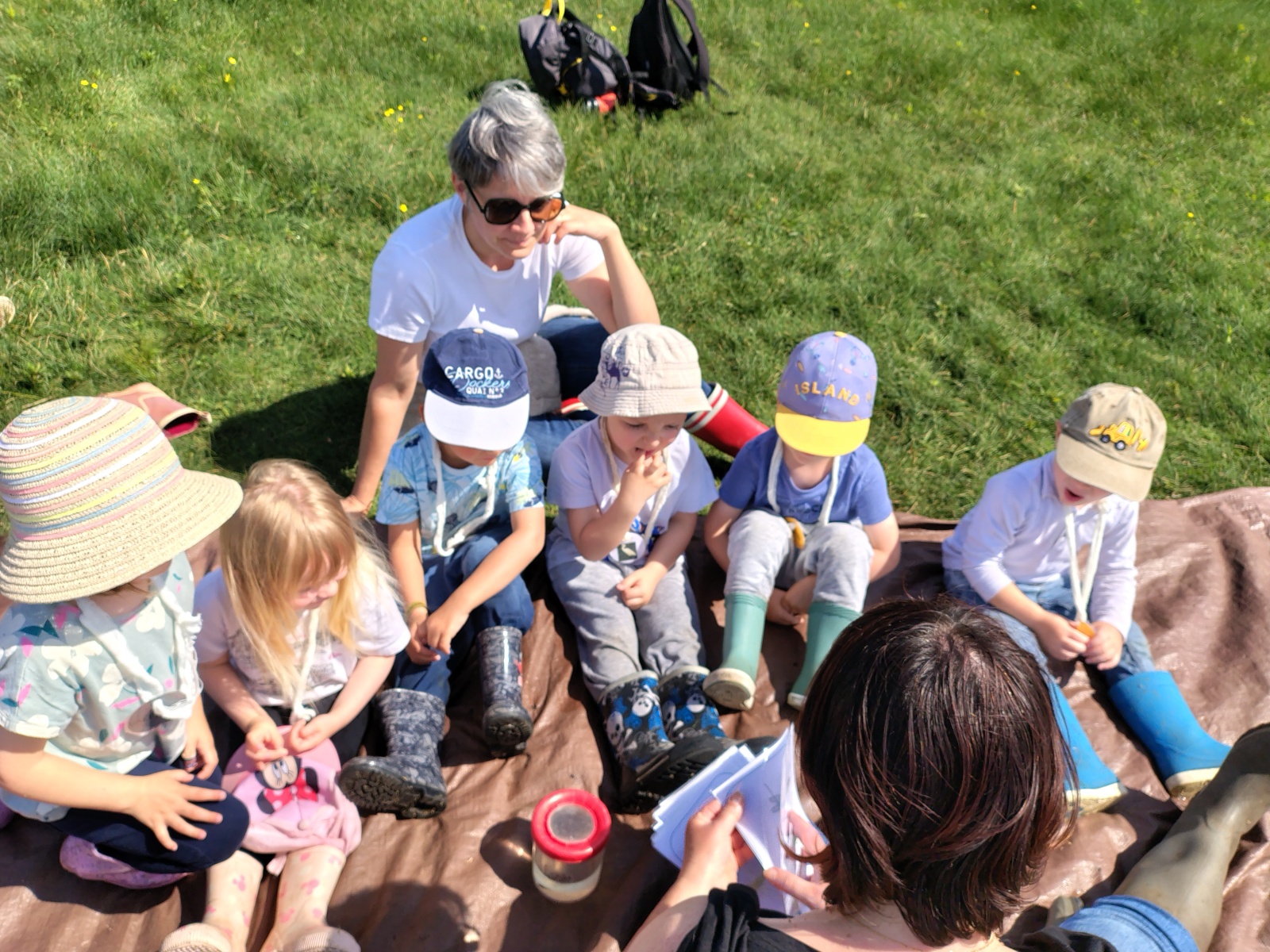 Nous sommes ensuite allés pique-niquer à l’ombre. Puis les PS ont participé à leur tour aux ateliers, pendant que les MS partaient à la pêche sur les bords du lac avec Charlène. Mettre les pieds dans l’eau et pêcher étaient autorisés car les enfants étaient avec une animatrice du Centre. Il n’y a que 6 8 pêcheurs qui ont l’habilitation à pêcher sur le lac !