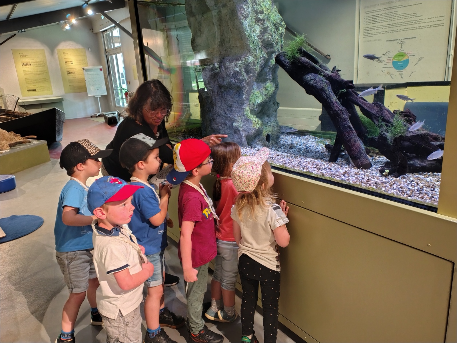 L’atelier Poissons et écrevisses , animé par Léonie ! Reconnaissance de certains poissons en parlant de leur morphologie et de leur mode de vie. Pêche de petites écrevisses !